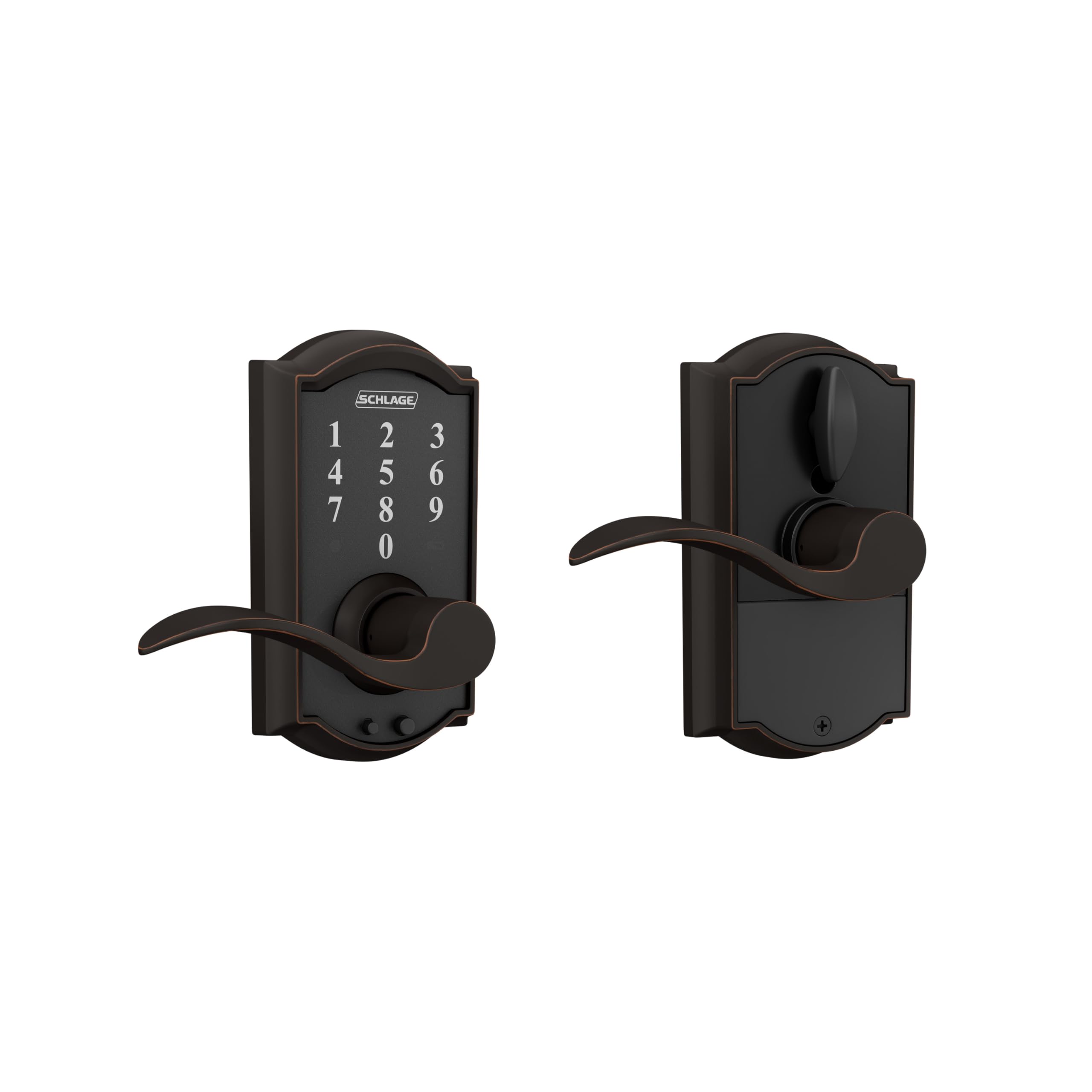 KEYLESS CONVENIENCE: Use 2 pre-programmed codes for easy setup out of the box; assign up to 19 codes for trusted friends and family to experience convenient, keyless security; choose between auto-locking and unlocked modes for customized convenience INNOVATIVE DESIGN: Cylinder-free design has no keyway to bump or pick; gain peace of mind with no more keys to lose, hide, carry or forget; slim profile is sleek without sacrificing strength; inside lever is always unlocked for easy exit BATTERY POWERED FOR RELIABLITY: Operates with included 9V battery; avoid lockouts with dedicated low-battery indicator and jumpstart feature for backup access in case of battery failure SECURE TOUCHSCREEN ACCESS: Downlighting illuminates numbers, making it easy to enter your code in the dark; fingerprint-resistant touchscreen helps protect privacy of access codes EASY INSTALLATION: Replace an existing lever or knob yourself with no skill required; install in minutes with only a screwdriver and no hardwiring PREMIUM SECURITY: High-quality metal construction provides strength where it counts; Grade 2/AAA rating offers trusted security and durability for residential and light commercial applications TRUSTED WARRANTY: Schlage locks are backed by a limited lifetime mechanical and finish warranty, and a 3-year electronics warranty; see Schlage warranty for full details