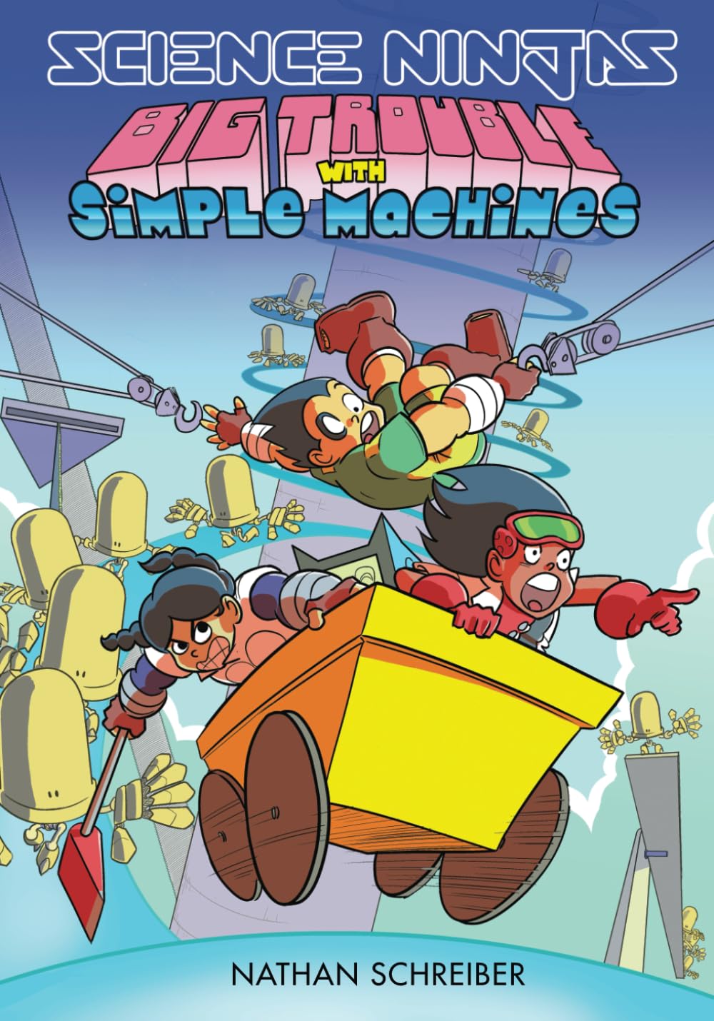Brilliant and ambitious Science Ninja Eureka Fermi wedges, ramps, and wheels her way through Julie Joules' lost laboratory in search of the Nova Battery - an abandoned prototype that could revolutionize energy. Should be easy - especially if she pulls in her super-powered, genetically-modified pals Carlos and Mei. But a blown curfew, screwy obstacles, and an army of apologetic robots leaves the trio desperate, overleveraged and definitely in Big Trouble! Along the ride, readers 8 and up learn principles of force, work, mechanical advantage, and compound machines. There's even an illustrated appendix of experiments readers can do at home to build their own simple machines and reinforce what they've learned!