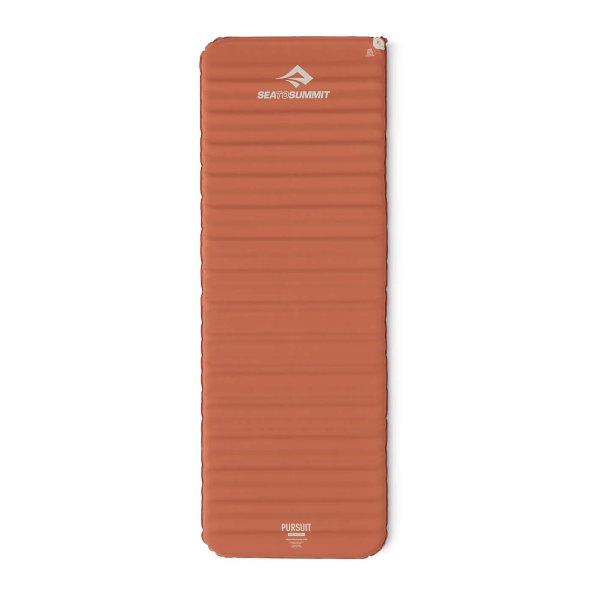 The lightest self-inflating sleeping mat in its class, offering three-season comfort for backpacking and camping Made from bluesign APPROVED, RCS-recycled, non-PFAS, solution-dyed fabric for durability and sustainability Thermally efficient Contour shape provides support for side sleeping and movement without added weight; horizontal Delta cores create air-filled chambers that reduce bulk and increase comfort XPEL multi-function valve and side-loading stuff sack make inflation, deflation, adjustment, and packing fast and easy Rectangular Regular sleeping pad measures 72 x 25.2 x 2 inches and weighs 1.71 pounds; R-Value of 3.0 (ASTM-tested) The Sea to Summit Pursuit Self-Inflating Sleeping Mat is the lightest self-inflating mat in its class, offering three-season comfort for camping and backpacking. Designed with five-centimeter horizontal Delta Cores, it creates air-filled chambers that reduce weight and bulk while maintaining stability and insulation. The thermally efficient Contour shape supports side sleeping and natural movement, while the rectangular options provide traditional comfort with added width. Each mat features bluesign APPROVED, RCS-recycled, non-PFAS, solution-dyed fabric for durability and sustainable performance. The XPEL multi-function valve allows fast inflation, deflation, and adjustment, and the included side-loading stuff sack makes packing quick and easy. Available in four sizes: Tapered Regular measures 72 x 22 x 2 inches and weighs 1.33 pounds, Rectangular Regular measures 72 x 25.2 x 2 inches and weighs 1.71 pounds, Tapered Large measures 78 x 25.2 x 2 inches and weighs 1.61 pounds, and Rectangular Large Wide measures 78 x 29.9 x 2 inches and weighs 2.31 pounds. The Sea to Summit Pursuit SI Sleeping Mat is ASTM-tested with an R-Value of 3.0 for reliable insulation in varied conditions. Sea to Summit products are guaranteed against defects in materials or workmanship for the lifetime of the product.