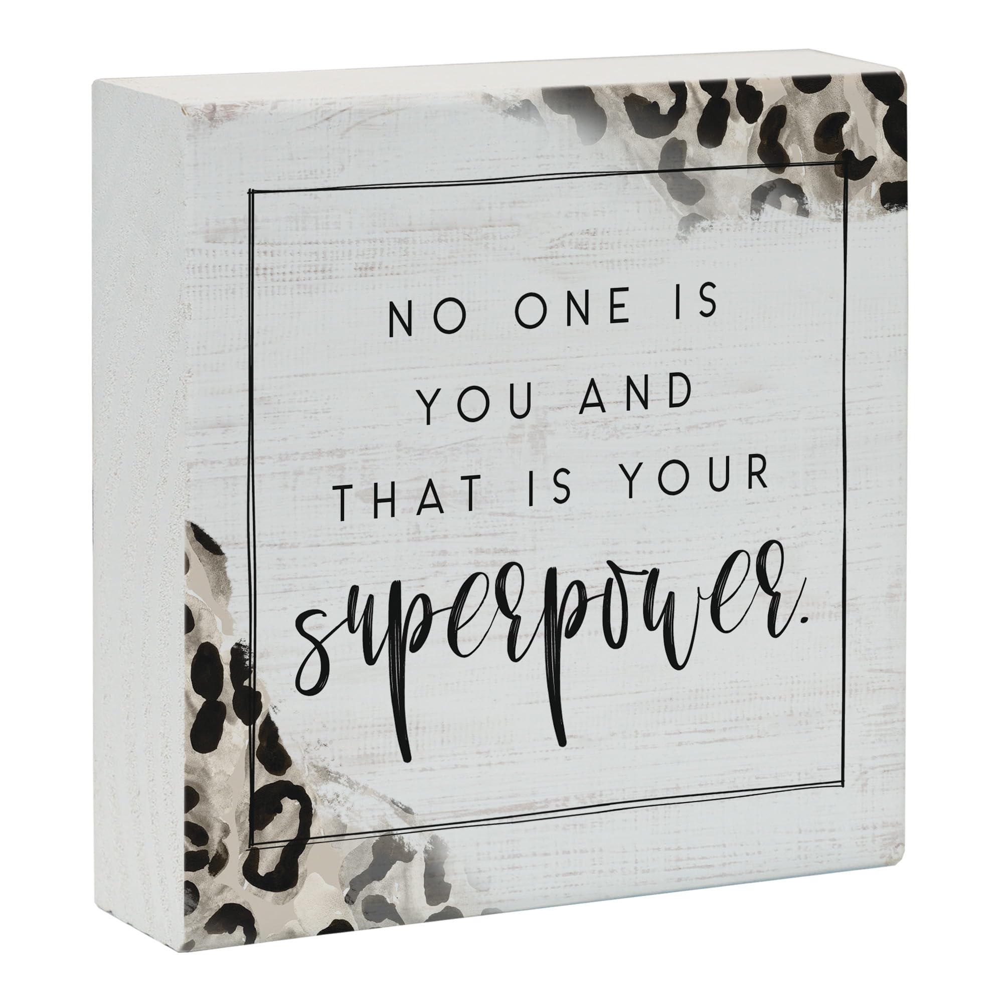Wooden plaque reads "No one is you and that is your superpower." A GIFT THAT DELIVERS A BIG MESSAGE IN A SMALL SIZE - Measures 5.25 x 5.25" x 1.25" so it's easy to find the ideal place for to display it. MADE FROM A SOLID SQUARE OF NATURAL WOOD – Each Small Talk Square is crafted from a real block of wood, 1.25” inch thick, giving it an impressive feel to match its expressive design. GREAT SHELF SITTER -- The sturdy wood block will rest securely on a shelf, end table, mantlepiece or wherever you choose to share its message. PROUDLY MADE IN THE USA – All of Simply Said’s Small Talk Squares are handcrafted in the United States in Simply Said’s family-owned shop. Handcrafted in the USA, Small Talk wood blocks from Simply Said, INC make the perfect personalized gift. Sign measures approximately 5.25 x 5.25 x 1.25 inches and is constructed to sit on your favorite shelf. Show off your unique style with Small Talks!