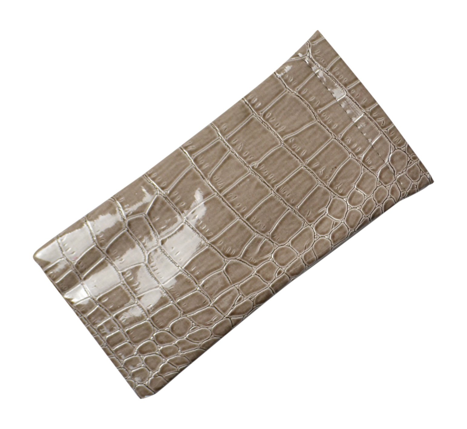 PERFECT FOR MEDIUM TO LARGE FRAMES. Squeeze top eyeglass case in beige embossed crocodile glossy vinyl stores glasses with the ease of a slip in case and snap closure of a hard case; keeping your glasses safely inside DURABLE SPRING TOP CASE stands the test of time. Protective eyeglass case edges are securely and neatly stitched. Eyeglass case soft padded cotton blend fabric interior keeps sunglasses or reading glasses scratch and dust free SLIM STYLIST DESIGN allows you to save space in your bag while spring top closing system grants you quick access to store your sunglasses or reading glasses. Just squeeze the sides to slip in your eyeglasses and go! GREAT FOR TRAVEL, GYM, OFFICE OR CAR. Keep a spring top eyeglass pouch handy at all times to store and discreetly carry medium to large glasses, sunglasses, credit cards, cosmetics, or even a cell phone 100% SATISFACTION GUARANTEE. Exterior Dimensions: 7.25” (L) x 3.5” (W) x 0.25” (H). Eyeglass case lightweight and durable.
