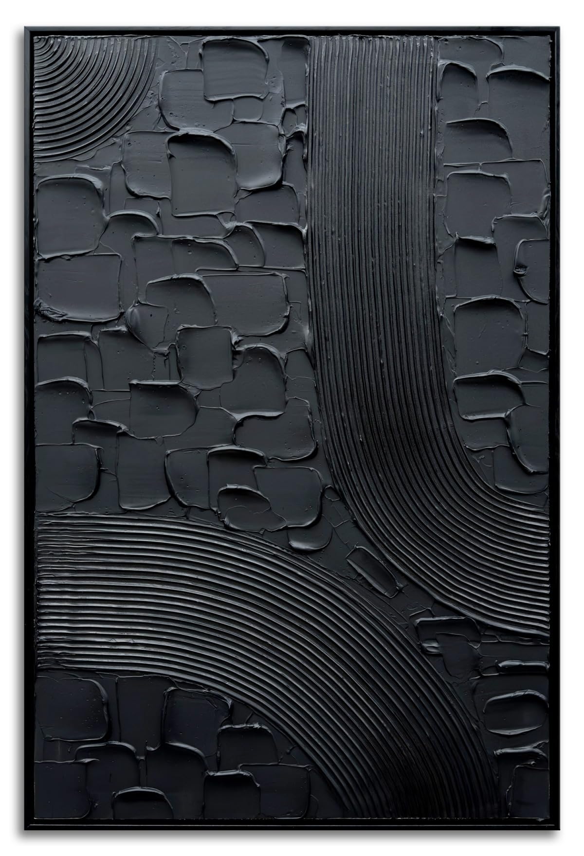 ---Elevate your living space with this captivating hand painted framed black abstract wall art. Crafted by palette knife oil painting techniques, this framed artwork boasts a 3D vertical canvas design, infusing contemporary flair into any room.