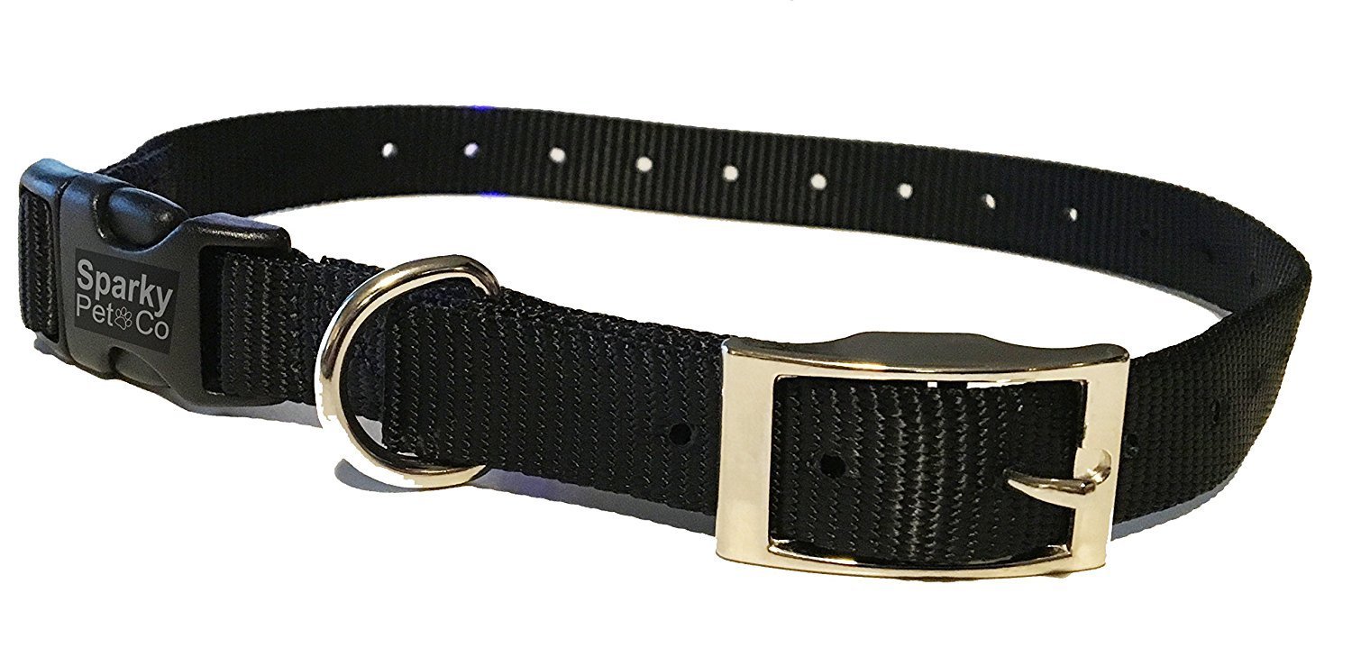 ECOLLAR REPLACEMENT STRAP: Spring into the season by updating your dog's e-collar receiver strap! This 3/4" x 23" nylon buckle collar with D ring by Sparky Pet Co is the perfect replacement for tattered, faded, and stained e-collar straps—designed for improved comfort, rigorous use, and superior receiver compatibility. DOUBLE BUCKLE CLOSURE: Stronger, safer, and more convenient! Featuring a metal buckle and snap clasp, our double buckle nylon collar straps offer a secure fit and will hold up to your dog's playing, walking, and training, while the quick-release feature allows you to remove it with ease when you need. Not recommended for tie-out. MADE FOR YOUR SYSTEM: Crafted to fit your receiver. This universal e-collar replacement strap works with all electronic dog training systems featuring a 3/4" collar strap that wraps around the receiver. Our durable nylon e-collar strap is compatible with major brands like PetSafe, Dogtra, Educator, SportDOG, & Garmin. EASY CARE: Rugged nylon strap! Whether your dog enjoys taking dirt baths or rolling in the grass, rest assured that you can easily clean this low-maintenance nylon collar for a like-new look every time. To refresh the strap, simply wipe the collar with a clean damp cloth. Replace straps with excessive wear and tear. HEAVY-DUTY: Each collar is made here in the USA to the highest standards. Our tough durable construction is made to give you waterproof means you get a longer-lasting collar strap that's made to keep up with your dogs. The nickel hardware features a D-Ring to secure leashes and tags. Suggested Compatible with Patpet, Garmin, Dogtra, Petrainer, Dog Care, Sportdog Field Trainer, Trainpro Dog Training Collar Receiver all systems E-Collar - ET-300-1/2 Mile Remote Waterproof Trainer Mini Educator Remote Training Collar - Sparky Pet Co - Nylon Double Buckle Replacement E-Collar StrapsKeep your pet safe and yourself stress-free! Exclusively by Sparky Pet Co, your dog will stay safe and look their best in our collection of ultra-durable e-collar replacement straps available in fifteen bold color varieties. Designed with durability and comfort in mind, this 3/4" x 21" e-collar strap is made with rugged nylon that will feel comfy on your dog's neck. You will love these long-lasting collars featuring an adjustable fit, superior e-collar receiver compatibility, and a double buckle with a metal quick-release clasp. Perfect Fit, Everytime!We know not all dogs are sized alike! That's why each collar features an adjustable range so you can find just the right fit for your pet without compromising comfort or security. This 21" e-collar strap features 20 holes to ensure a snug fit. Attach the nylon collar strap and thread the strap end through the D ring. The strap can also be trimmed down to size, simply put the cut end under a lighter for 4-5 seconds to keep the strap from unraveling. For the best fitting collar, carefully measure your dog or puppy's neck before ordering.Superior CompatibilityCrafted to fit your receiver. This universal e-collar replacement strap works with all electronic dog training systems featuring a 3/4" collar strap that wraps around the receiver. Our durable nylon e-collar strap is compatible with major brands like PetSafe, Dogtra, Educator, SportDOG, & Garmin.Features & Benefits3/4" x 23" E-Collar Replacement BandFor Dogs and PuppiesRugged MaterialNylon with Double BuckleAdjustable Fit With 20 HolesSquare Buckle and Secure, Quick Release Clasp (Metal)D Ring For StrapEasy CareFits neck sizes between #"-#"15 Color VarietiesMade in the USAGet the best from Sparky Pet Co!