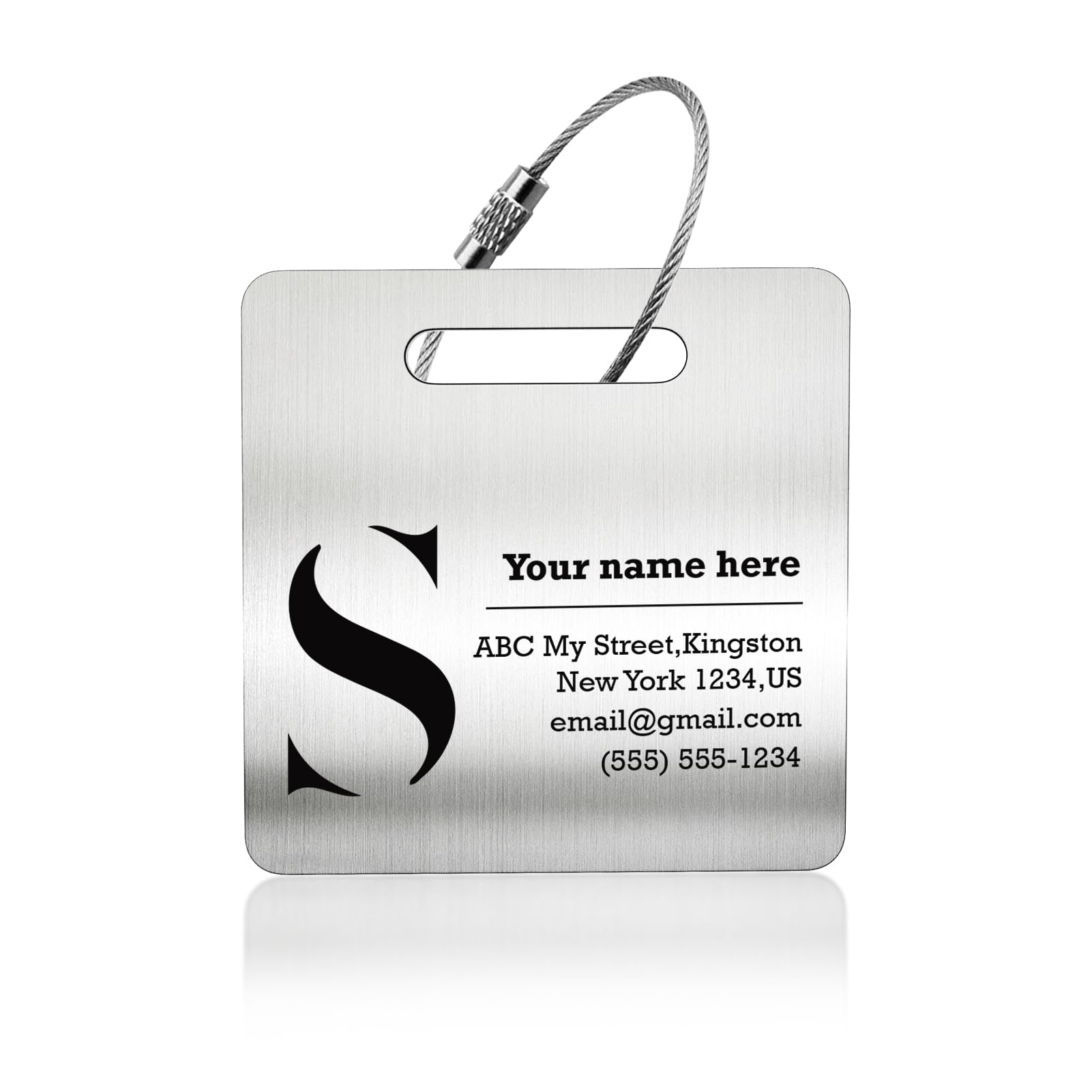 Made from durable and lightweight stainless steel material, our custom luggage tags are built to withstand the rigors of travel while remaining stylish and functional.