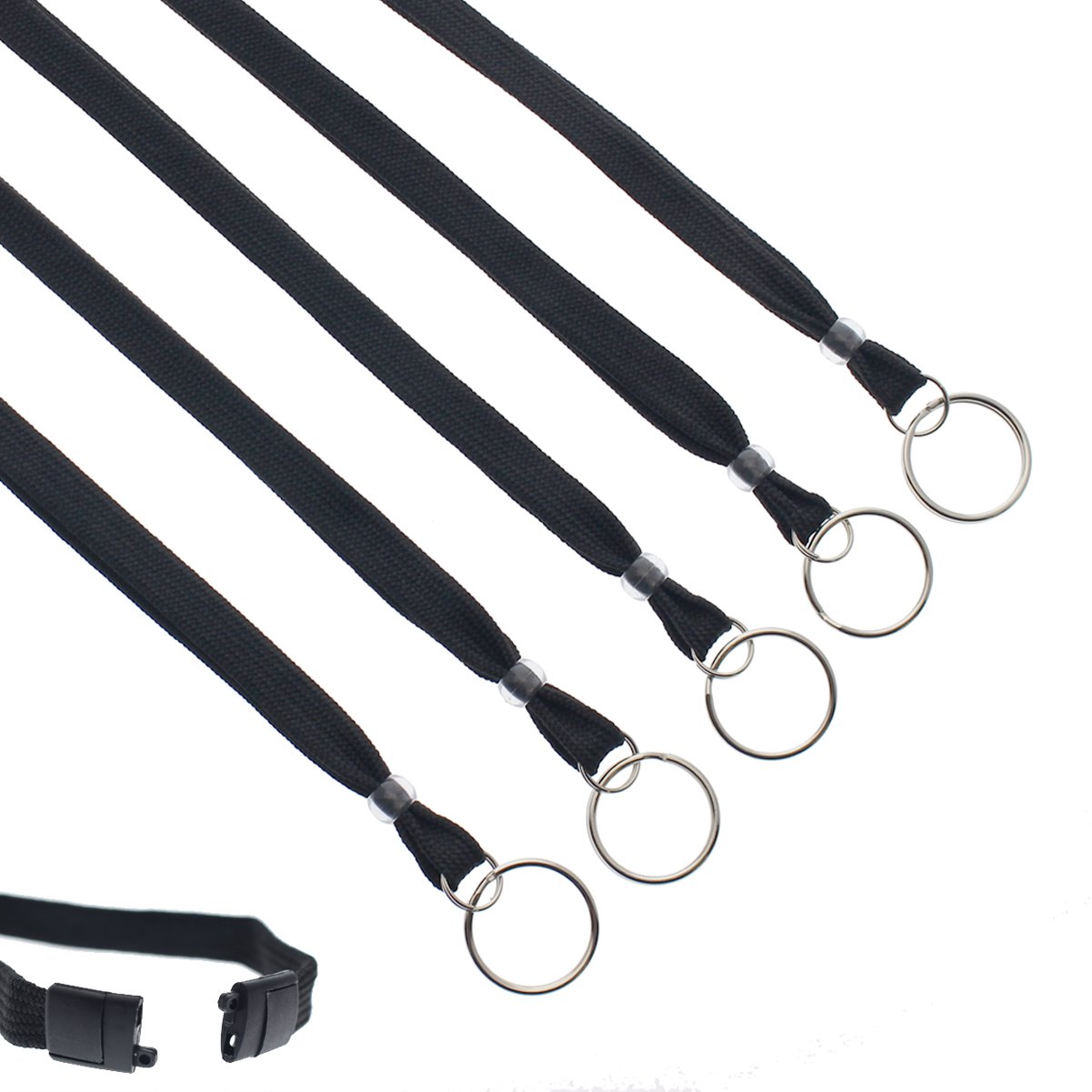 SECURE & RELIABLE FOR KEYS AND ID BADGES - Clip your Keys, Card Holders, Name Tags, Small Tools, USB Drive, and More to the Durable Split Ring for a Safe and Reliable Hold HEAVY DUTY KEY CHAIN LANYARD BULK PACK - Durable 48 Thread Count Polyester Woven Flat Braid Material that is Soft and Strong to Wear Around Neck. Lanyard is 36” Long- ⅜” Wide DESIGNED TO MATCH STANDARD UNIFORMS - These Thin, Flat Lanyards are Discreet to Wear Under Clothing and Specifically Designed for Government, Security, Police and Federal Uniforms (FAA TSA FDA DEA ETC) BLACK LANYARD KEYCHAIN - COLOR MATCHING SAFETY BREAK AWAY CLASP - COLOR MATCHING SAFETY BREAK AWAY CLASP - For Added Security and Required by Many Schools and Workplaces- Safety Protection to Prevent Neck Injury from Accidental Pull or Snag - Great for Schools, Teachers, Construction Workers, Aviation, Airlines, Cruise Ship, Occupational Therapy & Many Other Medical and Office Workplaces HIGH QUALITY & DURABLE - Despite Their “Non-Bulky” Stature, These Little Lanyards are Designed to Last a Long Time - Secure Construction, Strong 1 INCH Split Ring and a Tight Break Away Snap Quick Release These are the one of the most popular and economical split ring lanyards we’ve offered. They are heavy duty, soft, and they look great with your team’s uniforms. Nothing distracting, just good, solid materials and workmanship with a secure split ring to hold your keys and a safety breakaway clasp to protect from unforeseen snag and grabs from wear and tear moments.
