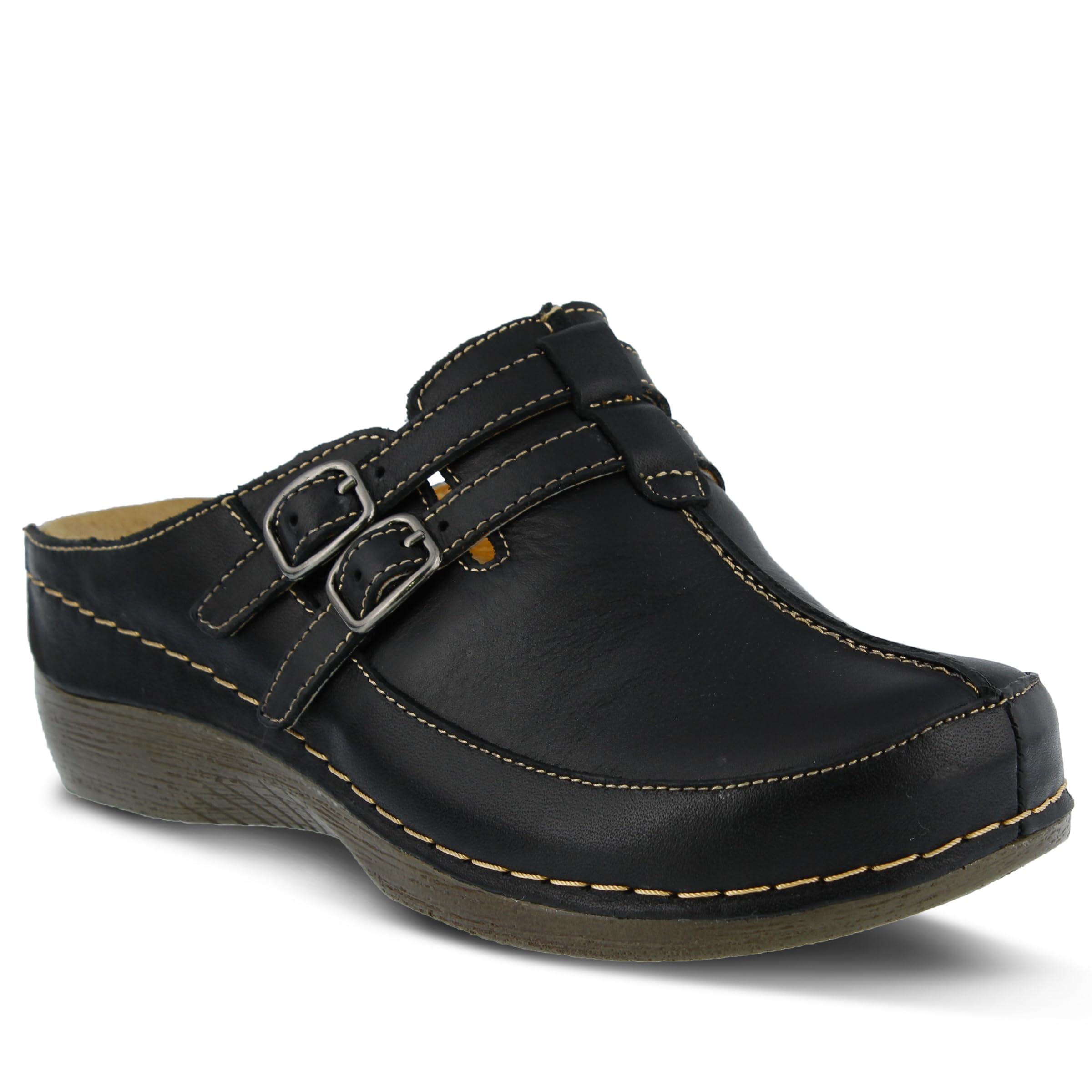 πππππππ πππππππ: These women's loafers with polyurethane outsole are slip-proof, anti-shock, and flexible, providing both stability and durability. Walk with confidence in these clogs, no matter what the terrain is! ππππ-πππππππ πππππππππ: These mule clogs for women are made with high-quality leather. The leather lining and padded insole add extra comfort, while the round toe pattern gives more comfort to your feet. Spring Step Style: Happy Leather multi-strap slip-on clog styled with antiqued metal buckles and contrast stitch detail. Heel Height (approximately): 2 1/4" Features: -Round toe, high quality leather, adjustable straps. -Leather lining. -Soft textile padded removable insole. -Polyurethane outsole. -Imported.