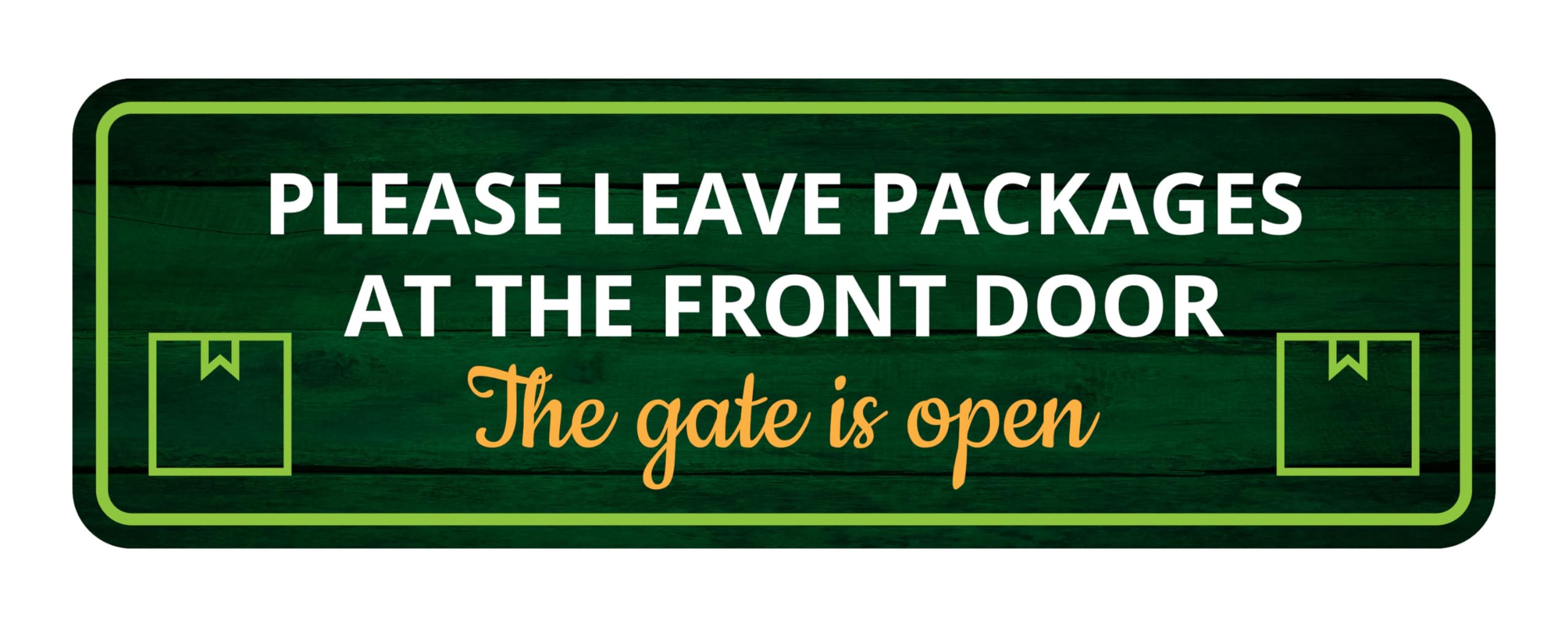 DURABLE AND LONG LASTING: Premium reinforced plastic for a long-lasting sign. VIBRANT COLOR: High quality printing gives the sign a vibrant and eye-catching finish. EASY INSTALLATION: Your sign comes with powerful double-sided adhesive foam tape. IDEAL BUSINESS AND HOME SIGNAGE: Our signs are a perfect fit for any environment. Dimensions: 2"H X 6" W Elevate your business or home environment with Signs ByLITA’s premium signs. Our Standard Plus Please Leave Packages At The Front Door - The Gate Is Open Wall or Door Sign is designed to enhance your workspace with style, while sending a clear message. These signs feature vivid sublimation printing that ensures clear and lasting colors, making a powerful visual impact. Installation is a breeze with double-sided adhesive foam tape, providing a secure hold without surface damage. Crafted from durable reinforced plastic, our Standard Plus Please Leave Packages At The Front Door - The Gate Is Open Wall or Door Sign is built to withstand daily wear and environmental conditions, eliminating the need for frequent replacements. These versatile signs find applications in various settings, from office doors and meeting rooms to displaying essential information or adding a touch of sophistication to your home decor. Signs ByLITA are the ideal choice for corporate offices, medical facilities, schools, and more. Our Please Leave Packages At The Front Door - The Gate Is Open Sign offers a practical and stylish solution to elevate your workspace. Invest in these signs today to make a lasting impression, enhance professionalism, safety and security and transform your workspace into a welcoming and professional environment.