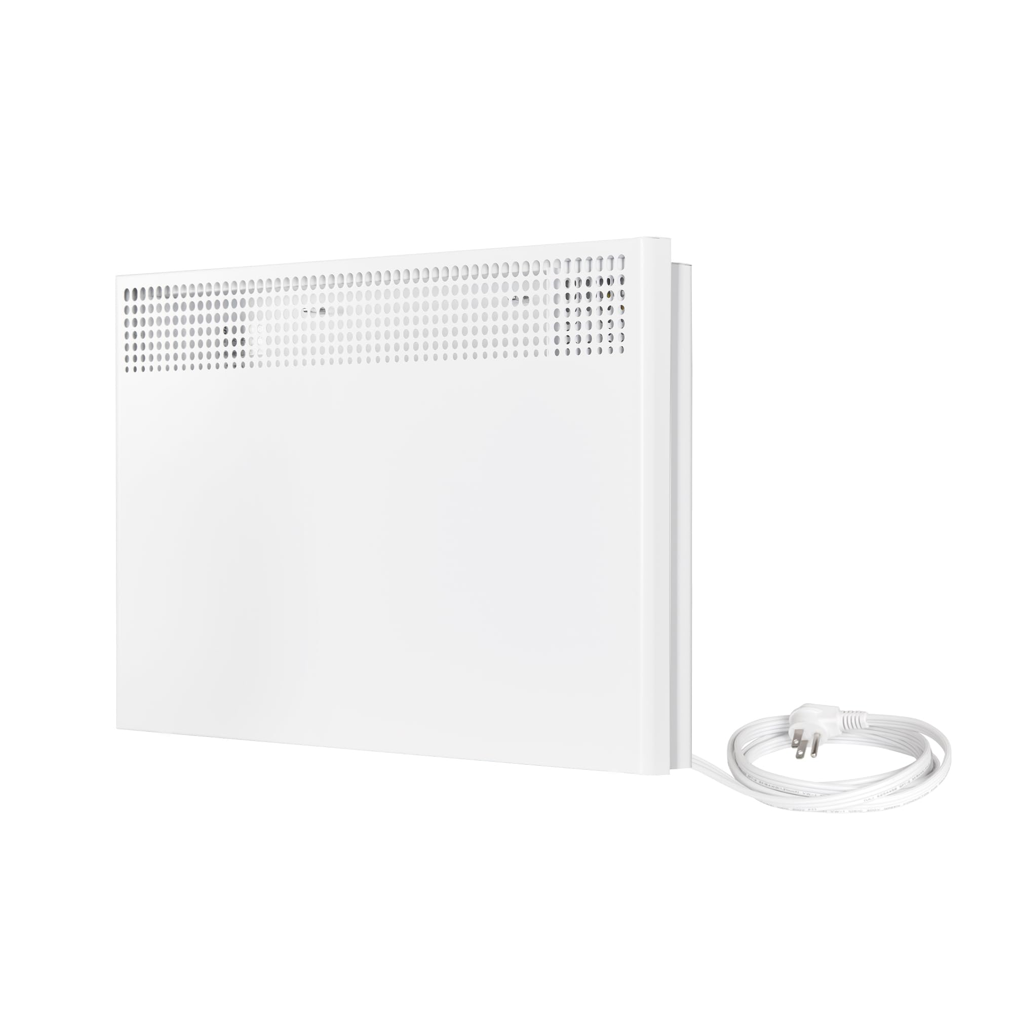 BUILT-IN PROGRAMMABLE THERMOSTAT – Features an electronic thermostat with LCD screen, letting you easily set temperature from 41°F to 86°F with precision and memory settings PLUG-AND-PLAY INSTALLATION – Includes a 6 ft grounded power cord and plug; installs quickly on any dedicated 120V outlet mounted ≥4 in from the floor SAFE & MODERN DESIGN – Cool-touch rounded edges and concealed mounting bracket ensure both style and user safety in any residential or light-commercial space PEACE-OF-MIND WARRANTY – Covered by a 5-year product warranty (3 years on electronic components), providing lasting quality and support - White Stelpro Convection Heater