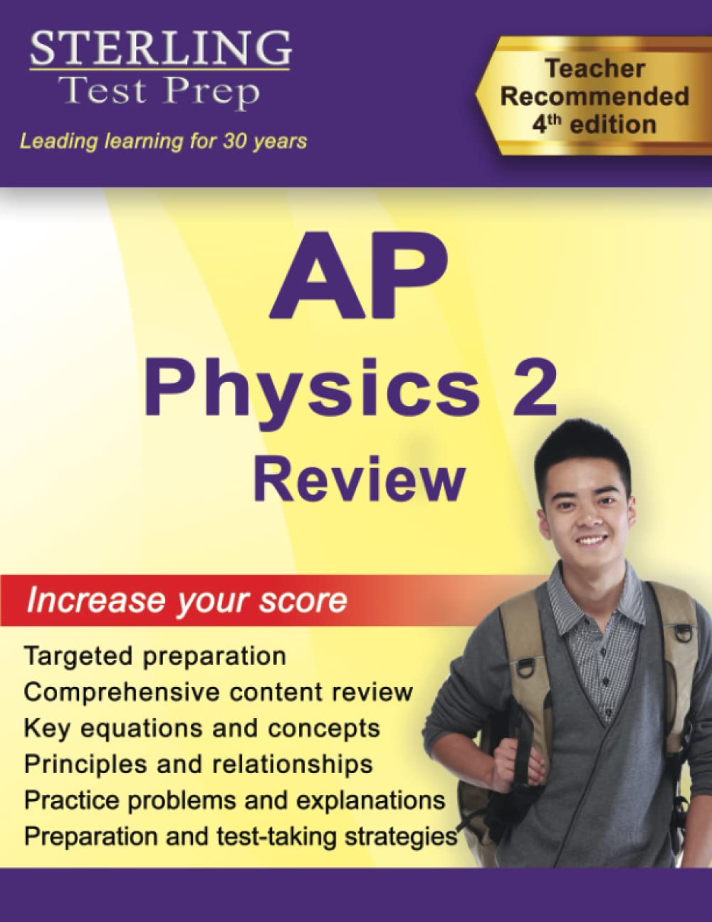 DISCONTINUED. New edition ISBN: 979-8885572965 Recommended by teachers. Trusted by students. ★ Higher score guarantee! ★ Thousands of students use Sterling Test Prep study aids to achieve high test scores! With a thorough and targeted review of all tested concepts, this book prepares you to achieve a high score on the AP Physics 2 exam. Scoring well on the AP exams is essential to earn placement credits and admission into a competitive college, which will position you for a successful future. This book prepares you to achieve a high score on AP Physics 2 exam by developing the ability to apply your knowledge and quickly choose the correct answer. Understanding key concepts, extracting and analyzing information from the question, and distinguishing between similar answer choices are more effective skills than merely memorizing terms. This book provides a thorough review of all topics tested on AP Physics 2 exam. The content covers the foundational principles and theories necessary to answer test questions. Physics instructors with years of teaching experience prepared this material by analyzing the AP Physics 2 exam content and developing preparation material that builds your knowledge and skills crucial for success on the test. Our editorial team reviewed and systematized the content to ensure adherence to the current College Board AP Physics 2 curriculum. Our editors are experts on preparing students for standardized tests and have coached thousands of undergraduate and graduate school applicants on test preparation and admission strategies. The review content is clearly presented and systematically organized to provide you with a targeted preparation for AP Physics 2. You will learn the scientific foundations and details of essential physics topics needed to answer exam questions. By reading these review chapters thoroughly, you will learn important physics concepts and the relationships between them. This will prepare you for the exam and significantly improve your AP score. ∙ AP Physics 2 Exam Test-Taking Strategies ∙ Thermodynamics ( laws of thermodynamics, ideal gases, kinetic theory ) ∙ Fluid statics and dynamics ∙ Geometric and physical optics ∙ Atomic and nuclear physics ∙ Particle physics ∙ Electrostatics and magnetism ( electric force, electric field, electric potential, magnetism, electromagnetic induction ) ∙ DC and RC circuits ∙ Quantum mechanics ∙ Common Physics Formulas & Conversions ∙ Glossary Since 1991, Sterling Test Prep prepares students for academic success. Sterling Test Prep publishes more than 140 study aids for high school, undergraduate, graduate, and professional students. Our writers, contributors, and editors are highly educated in sciences and humanities, with extensive classroom teaching and research experience. They are experts on preparing students for standardized tests, as well as undergraduate and graduate admissions coaching.
