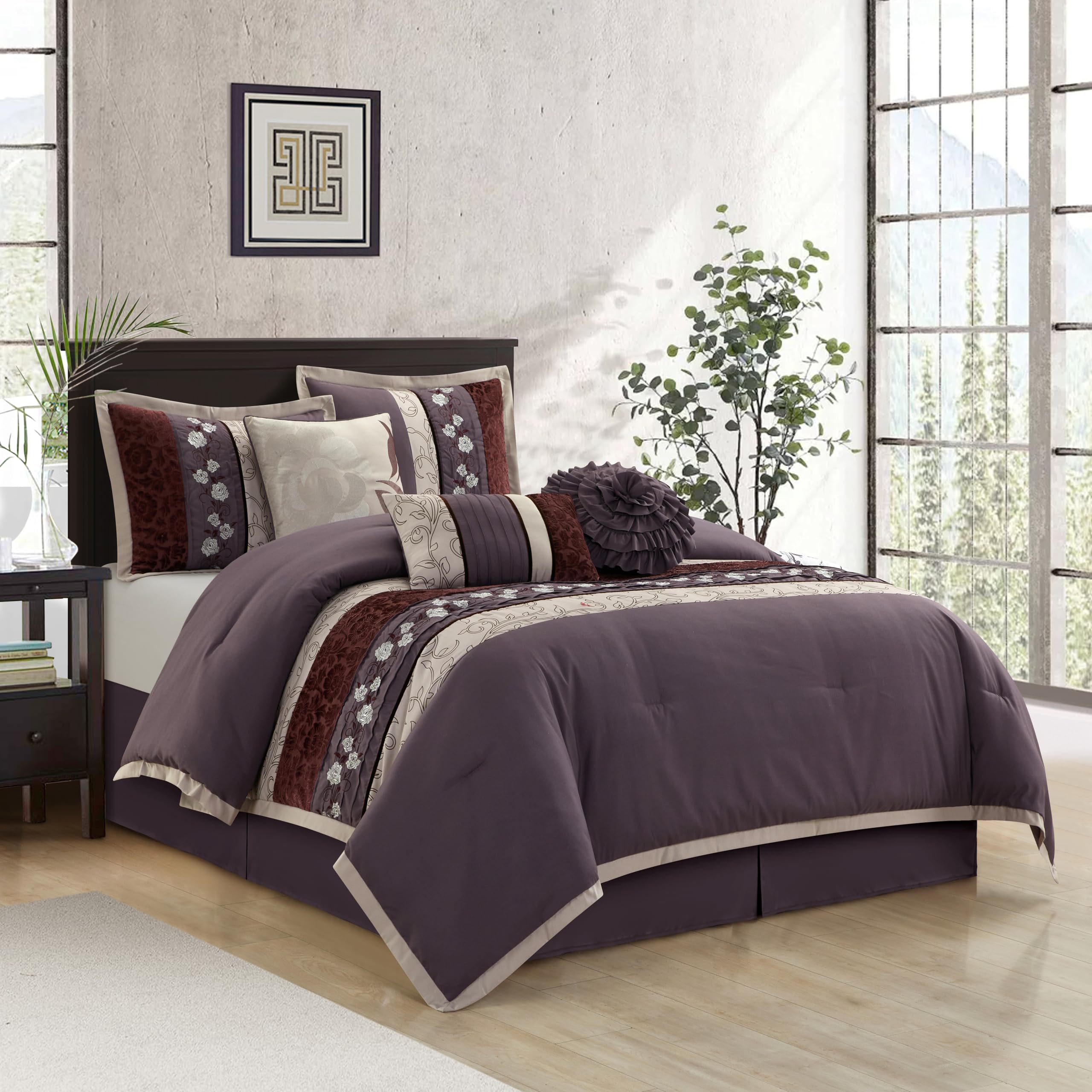 100% Polyester [Exquisite Design] This beautiful black 5-Piece comforter set is luxury fit for any bedroom. A comforter, bed skirt, shams, and three accent pillows, crafted with polyester fabric, are included in this set. The comforter boasts a tailored banded design with flocked vine and embroidered floral prints. Both prints, and a flourish of ruffles, are echoed on the bordered shams and toss pillows. [Supreme Softness] Immerse yourself in the unparalleled softness of premium polyester, designed for a luxurious sleep experience.Crafted with durability in mind, ensuring long-lasting comfort for years to come. Dimensions: 1 Comforter- 104 inches x 92 inches, 2 Shams- 20 inches x 36 inches, 1 Bedskirt- 78 inches x 80 inches with 15-inch drop, and 3 Decorative Pillows [Easy Care] Machine wash cold,gently and separately.Do not bleach.Tumble dry low.Remove promptly.Do not iron. [Great Gift] A thoughtful and practical present that adds a touch of elegance to any bedroom.Perfect for friends or family moving into a new home.Help them create a warm and inviting space with this stylish quilt set.