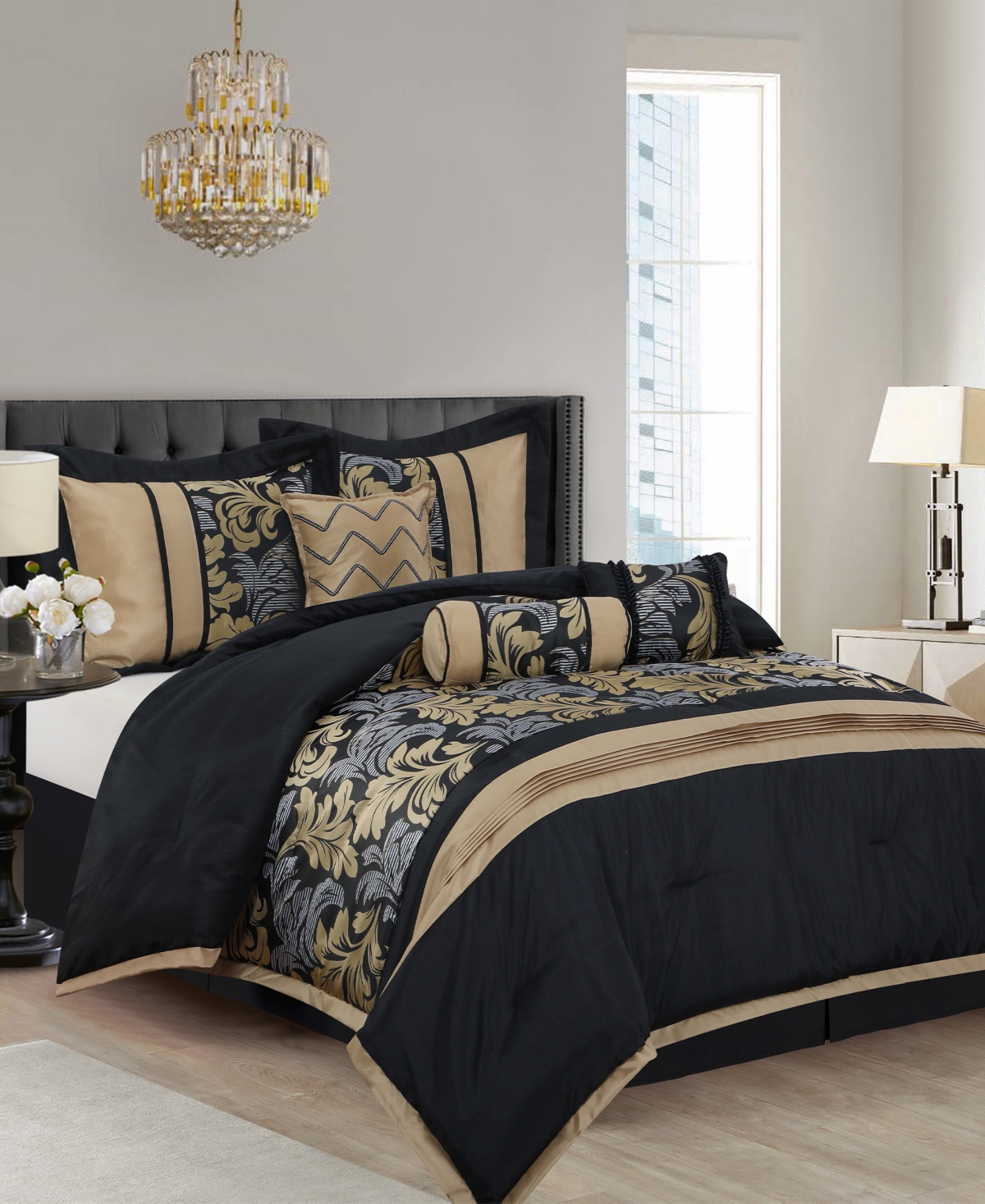Stratford Park Lincoln 7-Piece Comforter Set, King - Black Gold