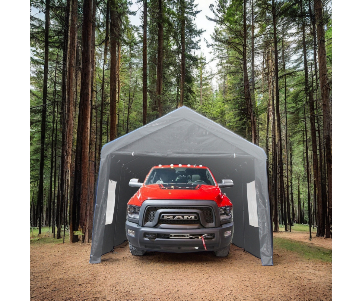 12x20ft heavy-duty car shed canopy with durable steel frame, waterproof Pe cover, ventilation windows and easy installation. Ideal for multiple vehicles, outdoor events and storage.