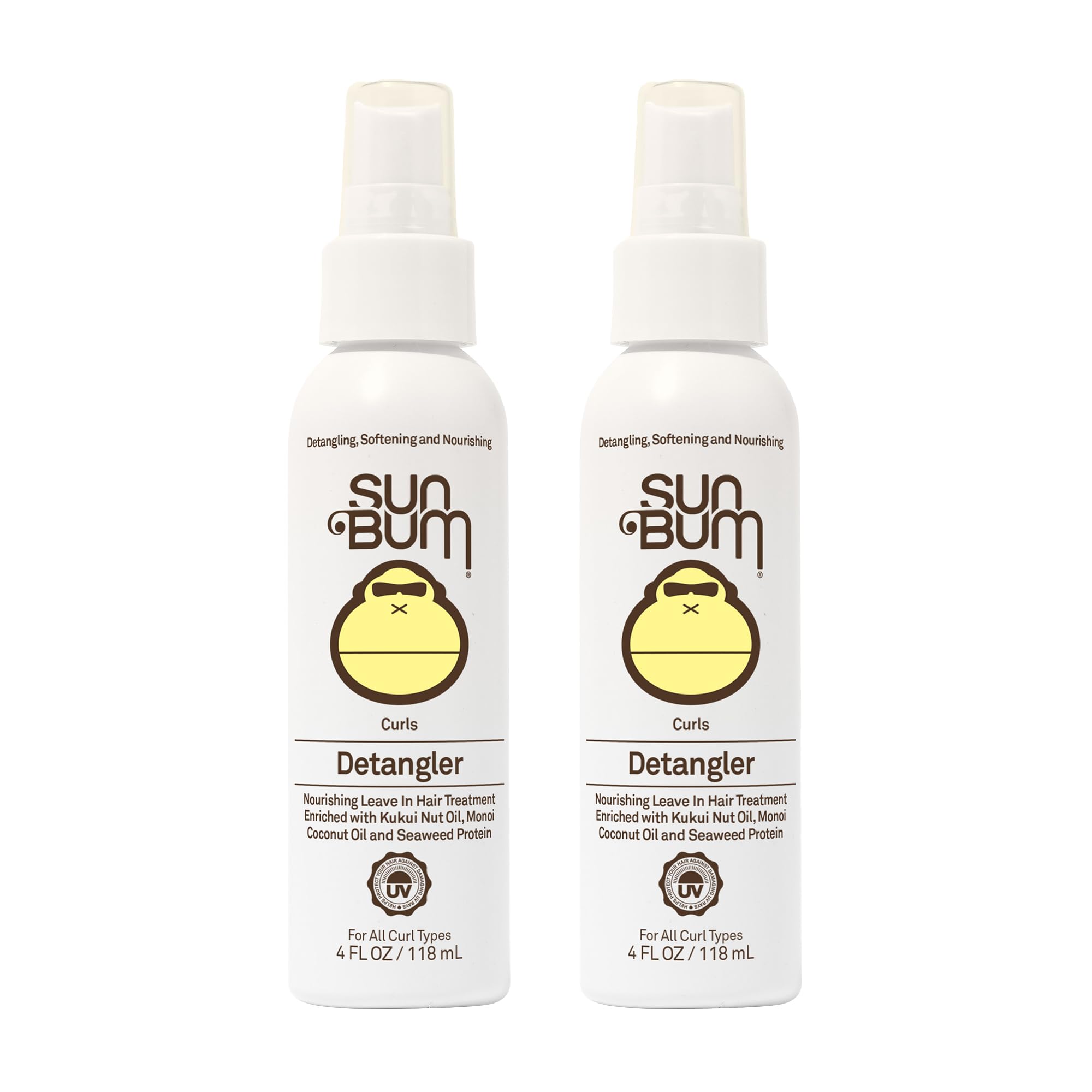Curls & waves Detangler 2 pack. Our curly and wavy haired Crew loves this lightweight Detangler! It tames and smoothens curls by adding a protective conditioning layer that seals hair to control frizz, reduce breakage and restore shine! Love your waves. This special Vegan blend uses kukui nut oil and Monoi Coconut Oil to protect your hair from damaging UV rays and shield your locks from becoming dull, brittle, frizzy and discolored. How to use. Spray directly onto damp or towel-dried hair. Work through hair with finger tips or a wide toothed comb to undo tangles. Also works great as a refresher on second day hair. Sonny's tip: dry curls with a cotton t-shirt to cut down frizz! Protect your hair. The key to maintaining healthy locks is healthy, natural ingredients. Our curls & waves hair products are enriched with Monoi Coconut Oil and seaweed protein, and are gluten, Cruelty, Sulfate and paraben free. Trust the Bum. What does that mean? It means trust us, the ones who live on the beach and need products that work on even the most intense days in the sun. The SIMPLE TRUTH is, when you make products to protect the ones you love, you make 'Em better.