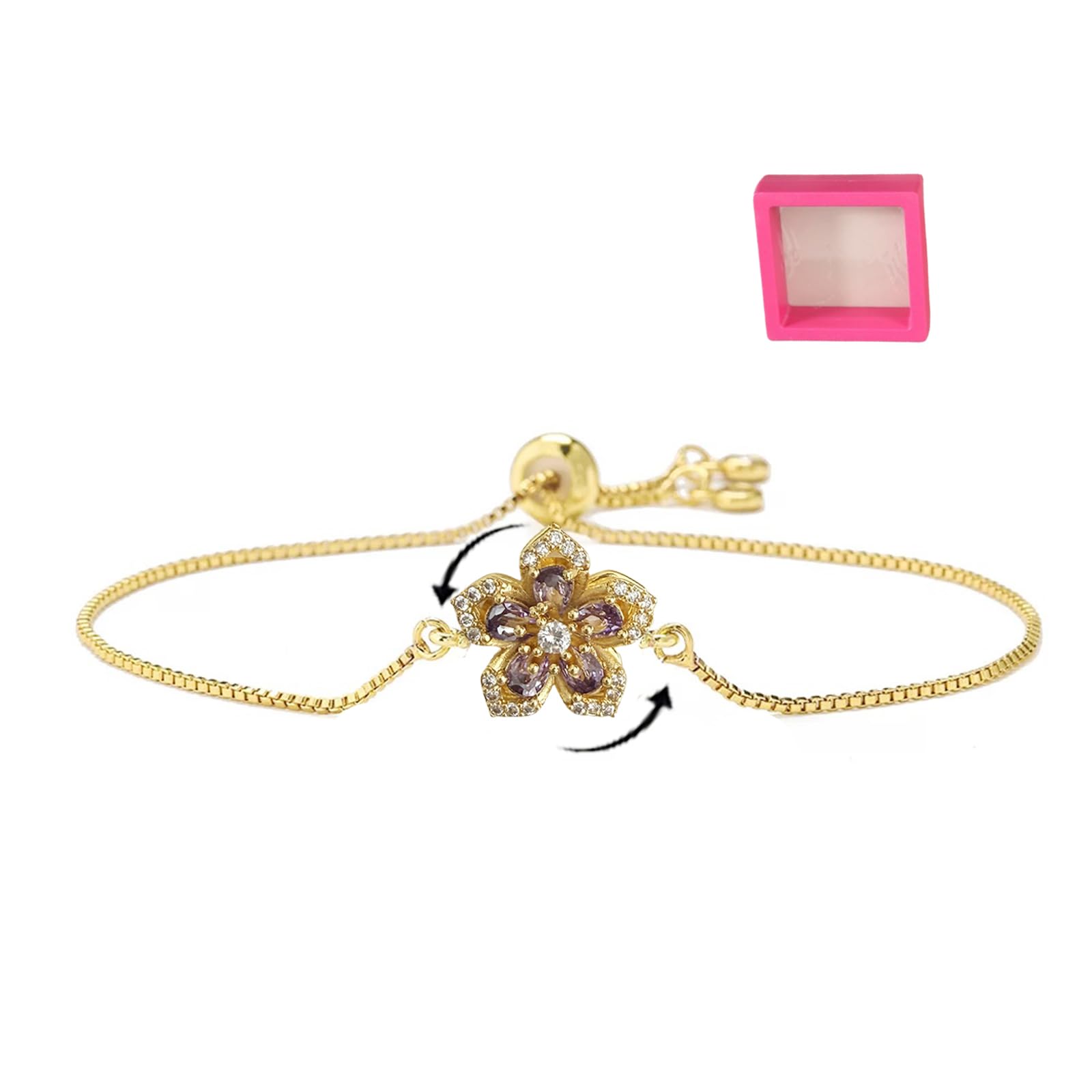 Sunflower Bracelets for Women:Sunflowers symbolize warmth, loyalty, love and faith, represents courage to pursue the happiness. Making it an inspirational sunflower gift for women to be brave, bright and cheerful like a sunflower Anxiety Bracelet forWomen:Each sunflower is carefully designed into a two-layer structure, with a dazzling circle of zircon on the top and a cleverly connected bottom tray at the top,when you're feeling anxious,making it easy for the flower to rotate freely with a gentle flick of the finger, instantly bring you a good mood. Spinner sunflower necklace is not only fashion accessory but fidget toy to stress relief jewelry Spinning Sunflower Bracelet: Crafted from copper with gold cubic zirconia,We provide great flexibility in the size of the adjustable rotating bracelet, and the sliding chain design can be easily worn,so you don't have to worry about the bracelets being too big or too small.These Sunflower Rotatable Bracelet are classic and so elegant that women of all ages can enjoy them all day Fidget Bracelet for Women: The funny spinning flower bracelet is a unique jewelry accessory that can be given to your family,friends,relatives,sisters and loved ones on birthdays,anniversaries,weddings,graduation,Christmas and New Year After Sales Service:We have the most enthusiastic after sales team,if you encounter problems when shopping,our after sales team will be timely and enthusiastic to solve any problems for you,to make your satisfaction is our pride Each sunflower is carefully designed into a two-layer structure, with a dazzling circle of zircon on the top and a cleverly connected bottom tray at the top,when you're feeling anxious,making it easy for the flower to rotate freely with a gentle flick of the finger, instantly bring you a good mood