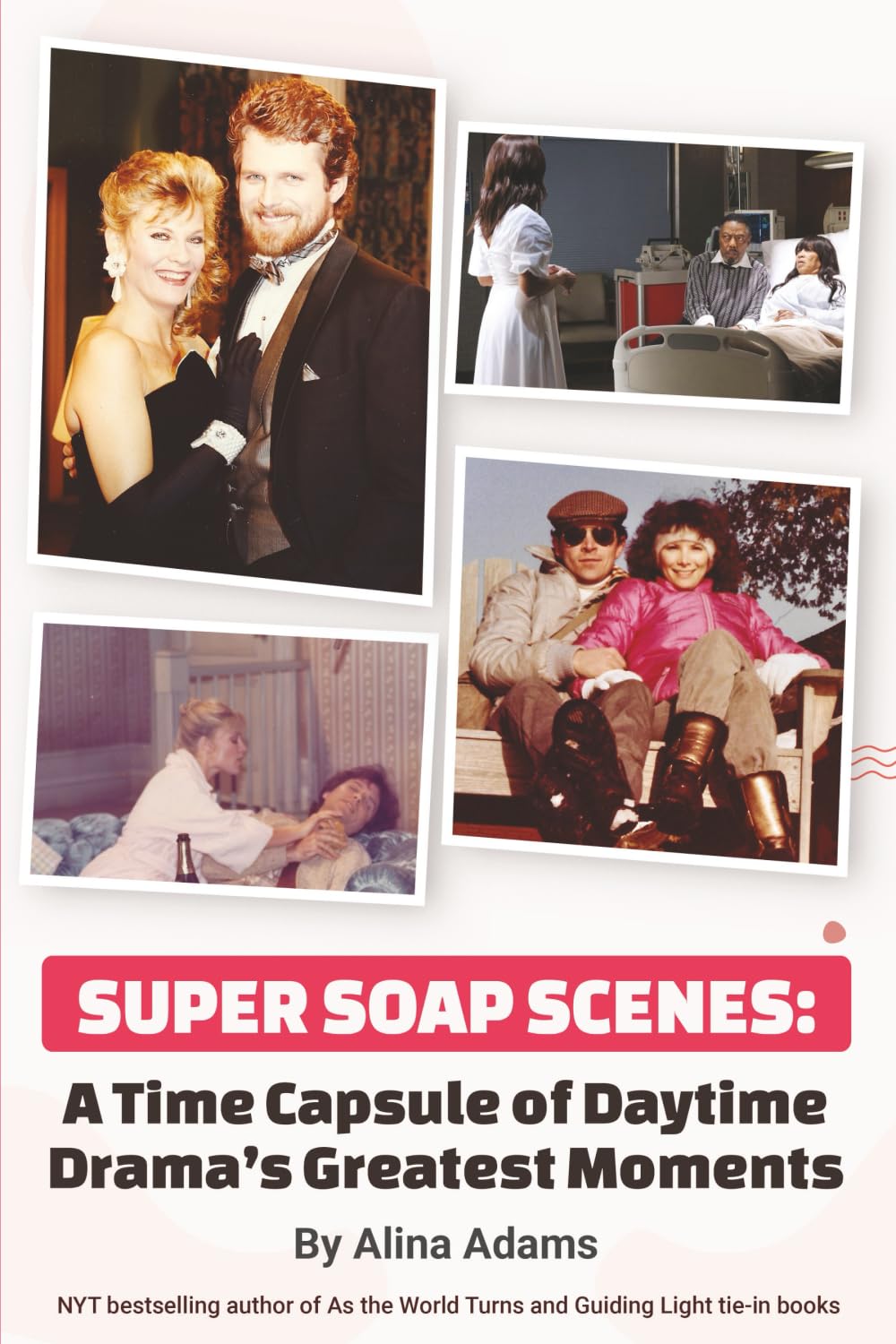 From the first radio soap opera in 1930 to network television and streaming today, daytime dramas have been full of heart-tugging, heart-breaking, and heart-stopping moments, storylines, and performances. But which can be classified as the very, very best of the genre? NYT best-selling author of “As the World Turns” tie-ins, “Oakdale Confidential” and “The Man From Oakdale,” “Guiding Light” tie-in “Jonathan’s Story,” and the “Another World” continuation “Another World Today” Alina Adams asked fans to share their favorites from the past ninety-five years. She then asked the actors, writers, producers, and directors who created those memorable moments to spill the behind-the-scenes scoop on how each came together. You’ll hear from: Hilary B. Smith about Nora and Bo’s rock-and-roll “One Life to Live” wedding Eden Riegel on Bianca coming out to her formidable mother, Erica Kane, on “All My Children” Sharon Gabet recalling Raven and Sky’s “Edge of Night” life-or-death confrontation in the Swiss Alps Headwriter Jill Lorie Hurst on how “Guiding Light’s” Olivia and Natalia fell in love Actors featured on the final episode of “Another World” Jess Walton reminiscing about Jill and Kay’s “The Young and the Restless” feud James Reynolds on how Abe ended up stuck between two wives on “Days of our Lives” Lane Davies performing a “Santa Barbara” soliloquy to a used pregnancy test Thom Racina, the Headwriter forced to marry “General Hospital’s” Luke and Laura earlier than planned due to the demands of one very famous wannabe wedding guest And many, many more moments from all of the above plus “The Bold and the Beautiful,” “As the World Turns,” “Generations,” “Sunset Beach,” “Dark Shadows,” “Port Charles,” “Ryan’s Hope,” “Search for Tomorrow,” and other classic shows, along with some never before seen backstage photos! “Super Soap Scenes: A Time Capsule of Daytime Drama’s Greatest Moments” is a book no soap fan can live – or come back from the dead – without!
