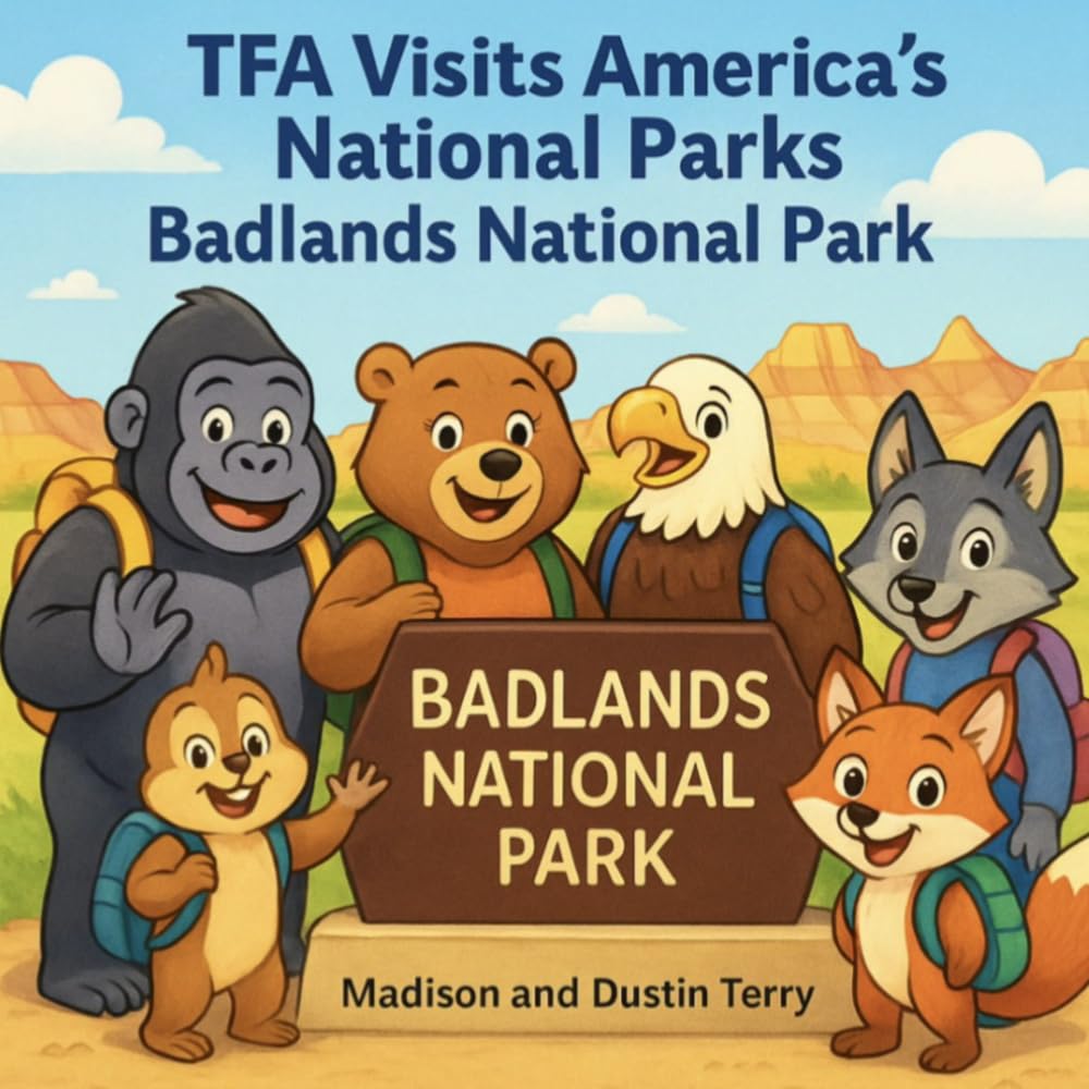Join the fun with Grayson, Bella, and their children as they visit Badlands National Park! Explore visitor centers, hike exciting trails, and spot wildlife - from mighty bison to curious prairie dogs. Along the way, learn about colors, shapes, letters, and counting in this rhyming national park adventure!