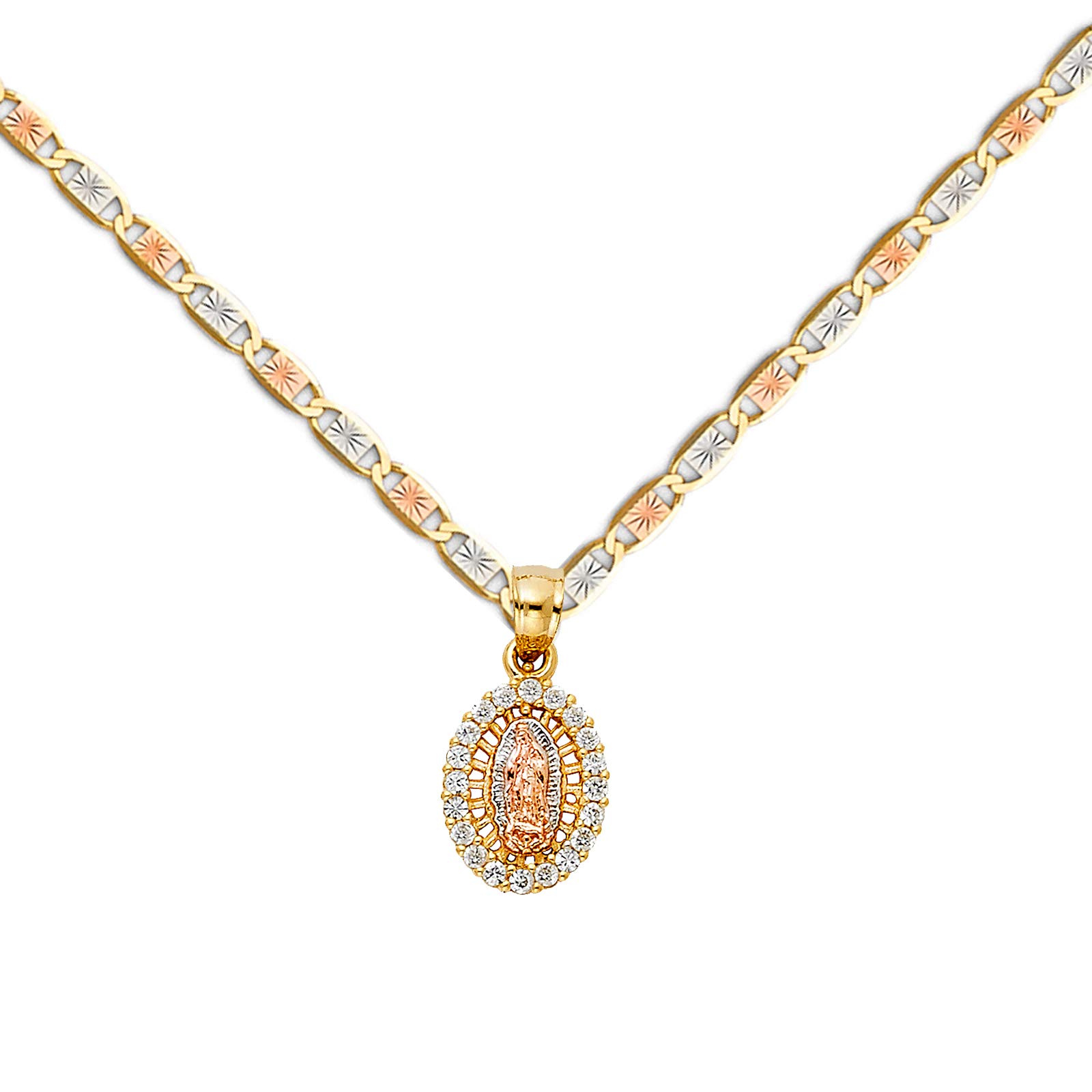 Elevate your jewelry collection with the TGDJ 14K Yellow Gold Our Lady of Guadalupe Cubic Zirconia CZ Charm Pendant Necklace. This exquisite piece is crafted from authentic 14K gold, ensuring durability and a radiant shine that lasts. The pendant features a beautifully detailed Our Lady of Guadalupe charm, embellished with 20 sparkling cubic zirconia stones that catch the light beautifully.