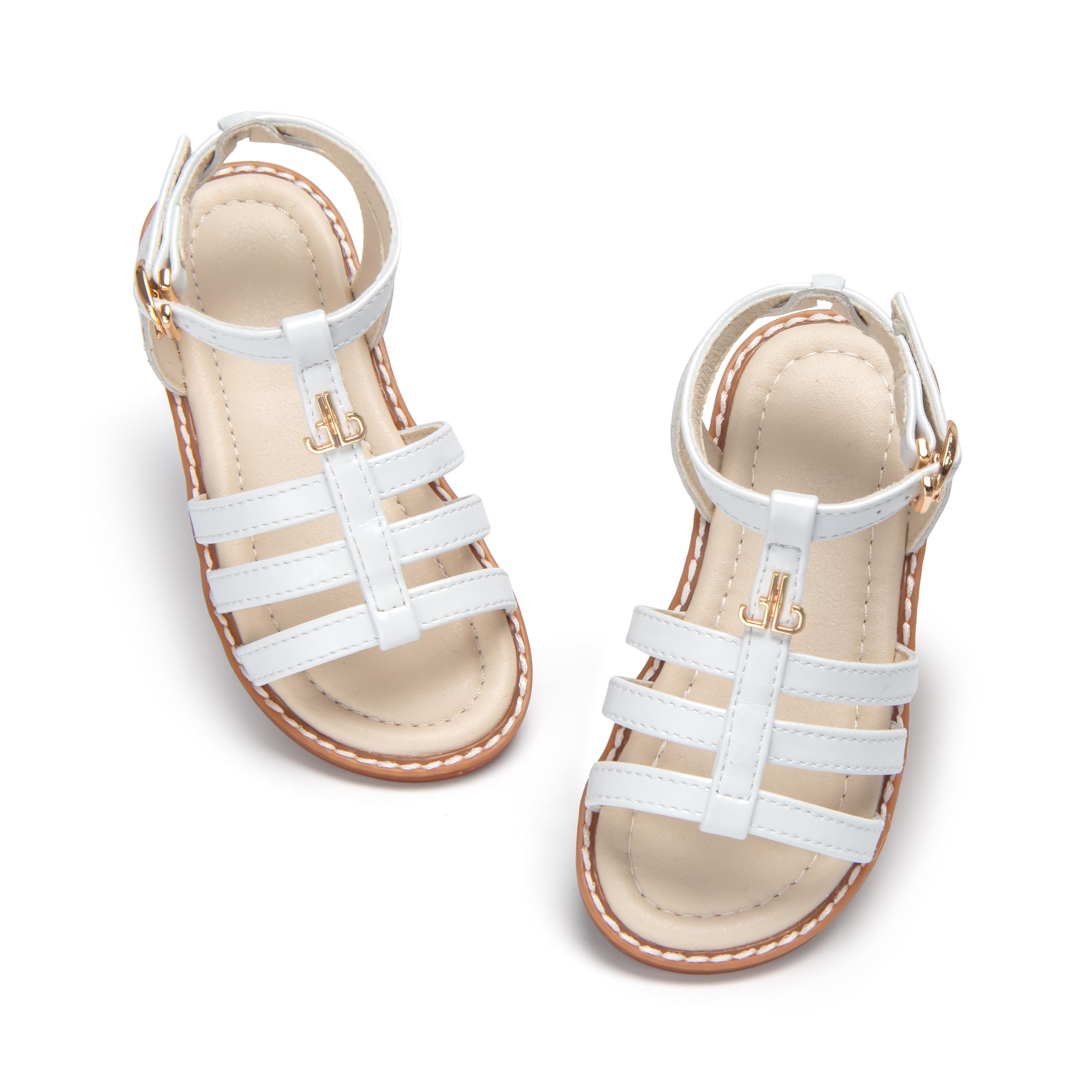 Timeless Gladiator Style - Classic cross-strap design with retro leather-like texture, perfect for dress-up parties, school plays, or themed events Safety-Focused Buckle Design - Exclusive “thee bron” engraved buckle locks straps securely, no metal edges or protruding parts to scratch delicate skin Playground-Ready & Tender-Heel Safe - TPR sole flexes with natural foot movement, plus ultra-soft heel padding prevents blisters during running Kids' Independence Encouraged - Easy hook-and-loop closure lets preschoolers fasten shoes themselves, building confidence through play Versatile Style - Available in Multiple Colors.Available in a variety of classic colors, these sandals pair easily with dresses, shorts or casual outfits, making them perfect for playground adventures, trips to the beach or daycare We believe in celebration.