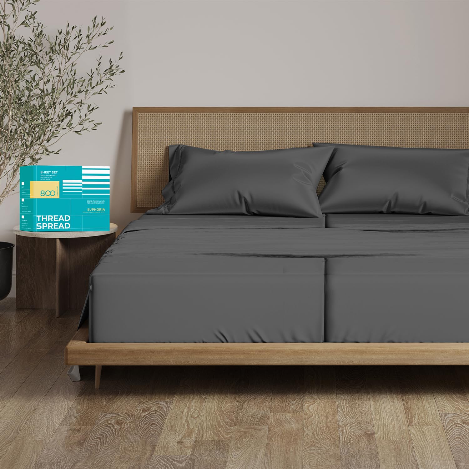 Luxurious Five-Star Hotel 100% Egyptian Cotton Sheet Set: Crafted from 100% Extra Long-Staple Egyptian Cotton, our sheet sets are softer and more durable for improved plushness. The 800 THREAD COUNT cotton bed sheets are buttery smooth and silky with a rich sateen weave that adds luminous touch to the bedding. These are heavyweight, cooling, and breathable for the ultimate five-star hotel luxury and all-season comfort What Comes In The Set?: Our Split King Size Sheet Set Has 5 Pieces: 1 Top Flat Sheet (108” W x 106” L), 2 Fitted Bottom Sheet (39” W x 80” L + 16”), and 2 King Size Pillowcases (21” W x 41” L). The fitted sheet has deep pockets to fit adjustable mattresses from 8 inches to 16 inches deep. Clever HEAD/FOOT Tags help you to make the bed easily. Pair this Egyptian cotton quality sheets split king size with a matching comforter and duvet cover to elevate the home/room decor Safe For You & Your Family: Cotton is naturally-sourced and earth-friendly, unlike microfiber and other linens that are not ideal for your health and skin. At Thread Spread, we focus on healthy and quality living, and our luxury sheets are certified as STANDARD 100 BY OEKO-TEX to be free from harmful substances Care Instructions: Thread Spread recommends washing the sheets at least once a week. You can either tumble dry or hang the sheets outside to dry. These deep pocket cotton split king sheets are resistant to shrinking, fading, and pilling. The fabric opens up in a few washes and becomes softer and smoother. Remove these luxury bed sheets from the dryer as soon as the cycle ends to prevent wrinkles You Matter The Most: We’re confident that you will love our Egyptian cotton split king size sheets. In case you're unhappy with the purchase, we have a flexible return/refund policy to get the items exchanged or refunded. You can also gift our best Egyptian cotton sheets to your loved ones on Mother’s Day, Father’s Day, Women’s Day, Men's Day, Christmas, Valentine's Day, Halloween, Weddings, Vacations, and Autumn Holidays We’re confident that you will love our Egyptian cotton quality sheets. In case you're unhappy with the purchase, we have a flexible return/refund policy to get the items exchanged or refunded. You can also gift our best Egyptian cotton quality sheets to your loved ones on Mother’s Day, Father’s Day, Women’s Day, Men's Day, Christmas, Valentine's Day, Halloween, Weddings, Vacations, and Autumn Holidays