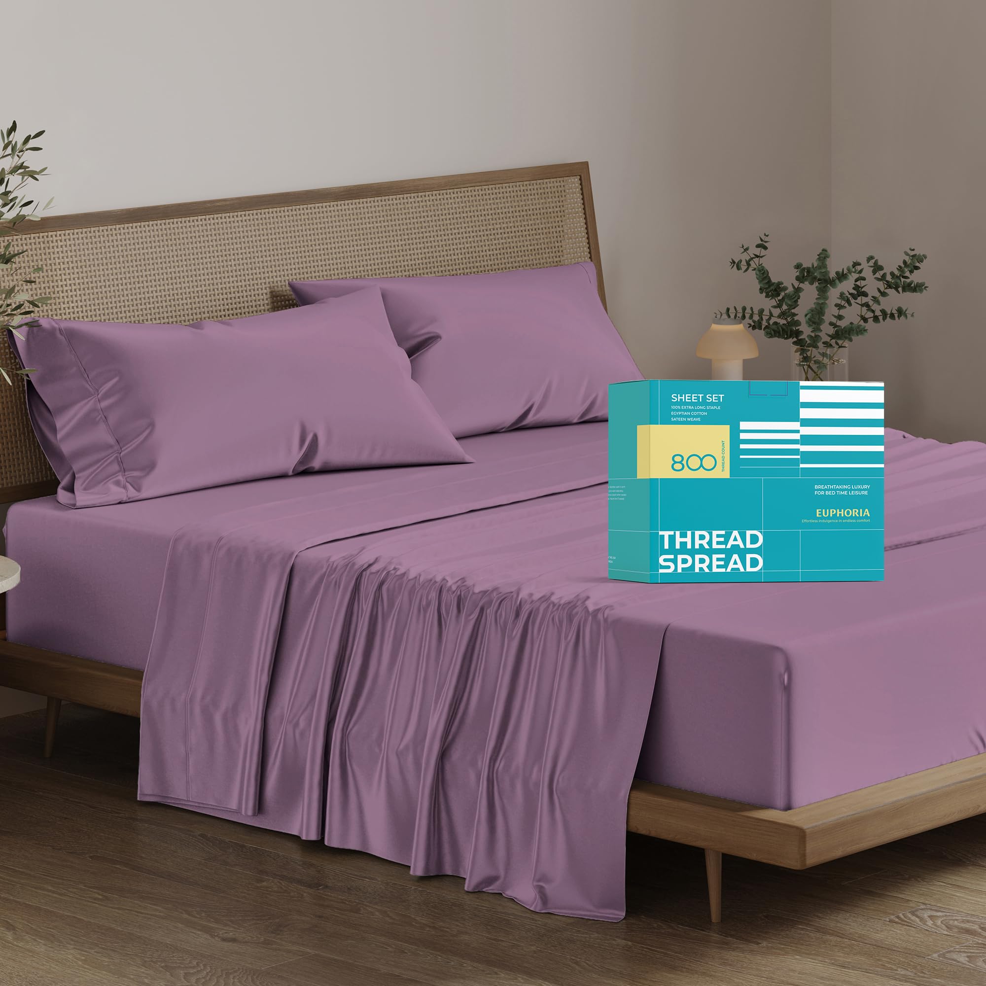 Luxurious Five-Star Hotel 100% Egyptian Cotton King Sheet Set: Crafted from 100% Extra Long-Staple Egyptian Cotton, our sheet sets are softer and more durable for improved plushness. The 800 THREAD COUNT king size sheets set are buttery smooth and silky with a rich sateen weave that adds luminous touch to the bedding. These are heavyweight, cooling, and breathable for the ultimate five-star hotel luxury and all-season comfort What Comes In The Set?: Our Cotton Sheets For King Size Bed Has 4 Pieces: 1 Top Flat Sheet (108” W X 102” L), 1 Fitted Bottom Sheet (78” W X 80” L + 16”), And 2 King Size Pillowcases (21” W X 41” L). The Fitted Sheet Has Deep Pockets To Fit Adjustable Mattresses From 8 Inches To 16 Inches Deep. Clever Head/Foot Tags Help You To Make The Bed Easily. Pair This Egyptian Cotton King Size Sheets Set With A Matching Comforter And Duvet Cover To Elevate The Home/Room Decor Safe For You & Your Family: Cotton is naturally-sourced and earth-friendly, unlike microfiber and other linens that are not ideal for your health and skin. At Thread Spread, we focus on healthy and quality living, and our luxury king bed sheets are certified as STANDARD 100 BY OEKO-TEX to be free from any unwanted substances Care Instructions: Thread Spread recommends washing the sheets at least once a week. You can either tumble dry or hang the sheets outside to dry. These deep pocket cotton king sheets sets are resistant to shrinking, fading, and pilling. The fabric opens up in a few washes and becomes softer and smoother. Remove these luxury king sheet set from the dryer as soon as the cycle ends to prevent wrinkles You Matter The Most: We’re confident that you will love our Egyptian cotton king sheets sets. You can also gift our best Egyptian cotton sheets to your loved ones on Mother’s Day, Father’s Day, Women’s Day, Men's Day, Christmas, Valentine's Day, Halloween, Weddings, Vacations, and Autumn Holidays. Give them as a gift or pair them with a luxury comforter, duvet cover, and other bedroom decors for the best sleep ever WHAT’S IN THE BOX? ● One Flat Sheet measuring 108” W x 102” L ● One Fitted Sheet measuring 78” W x 80” L + 16” deep pockets ● Two King Size Pillowcases measuring 21” W x 41” L MEET THE HIGHEST-QUALITY COTTON THREADS: Made from 100% extra-long staple cotton and a lustrous sateen weave that lends a classic touch. Buttery smooth and silky hand-feel, this 800 TC hotel collection sheet set is prized for its ultimate luxury, all-season comfort, and super softness and durability. UNIQUELY SOFT & COOL IN ALL SEASONS: Signature extra-long staple cotton sheets provide a cooling & light sensation to keep you ventilated in summer. These 100 percent cotton sheets regulate body temperature and keep you breathable while sleeping. Best for hot sleepers who sweat at night. FREE FROM TOXINS & HARMFUL CHEMICALS: Sourced from natural and organic processes, our egyptian cotton quality sheets are sustainable and earth-friendly compared to microfiber and other fabrics. Our cotton bed sheets are certified as STANDARD 100 BY OEKO-TEX to be free from toxins and harmful chemicals, assuring the safety of your family and the kids. DESIGNED FOR YOUR COMFORT & LUXURY: We make bedding that is both stylish and functional. The fitted sheet has extra deep pockets to snugly fit mattresses from 8 inches to 16 inches deep. The clever head/foot tags are labeled on the short side to help you make the bed easily. Pillows stay in place with envelope closures. MADE DIFFERENTLY, MADE FOR YOU: We are deeply committed to sustainable practices—from sourcing raw materials, creating high-quality sheet sets, to ensuring fair and ethical treatment to our artisans and farmers. We make bedding that is safe, soft, and comfortable, without sparing any details to make our bedding luxurious. Try us and see the difference in your quality of sleep!