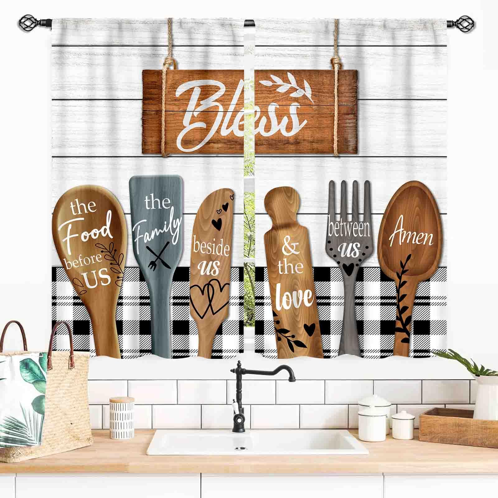 TKUYO Farmhouse Kitchen Curtainsm, Rustic Fork and Spoon Woodern Plank Board Cook Theme Country Cottage Cafe Living Room Bedroom Window Curtains