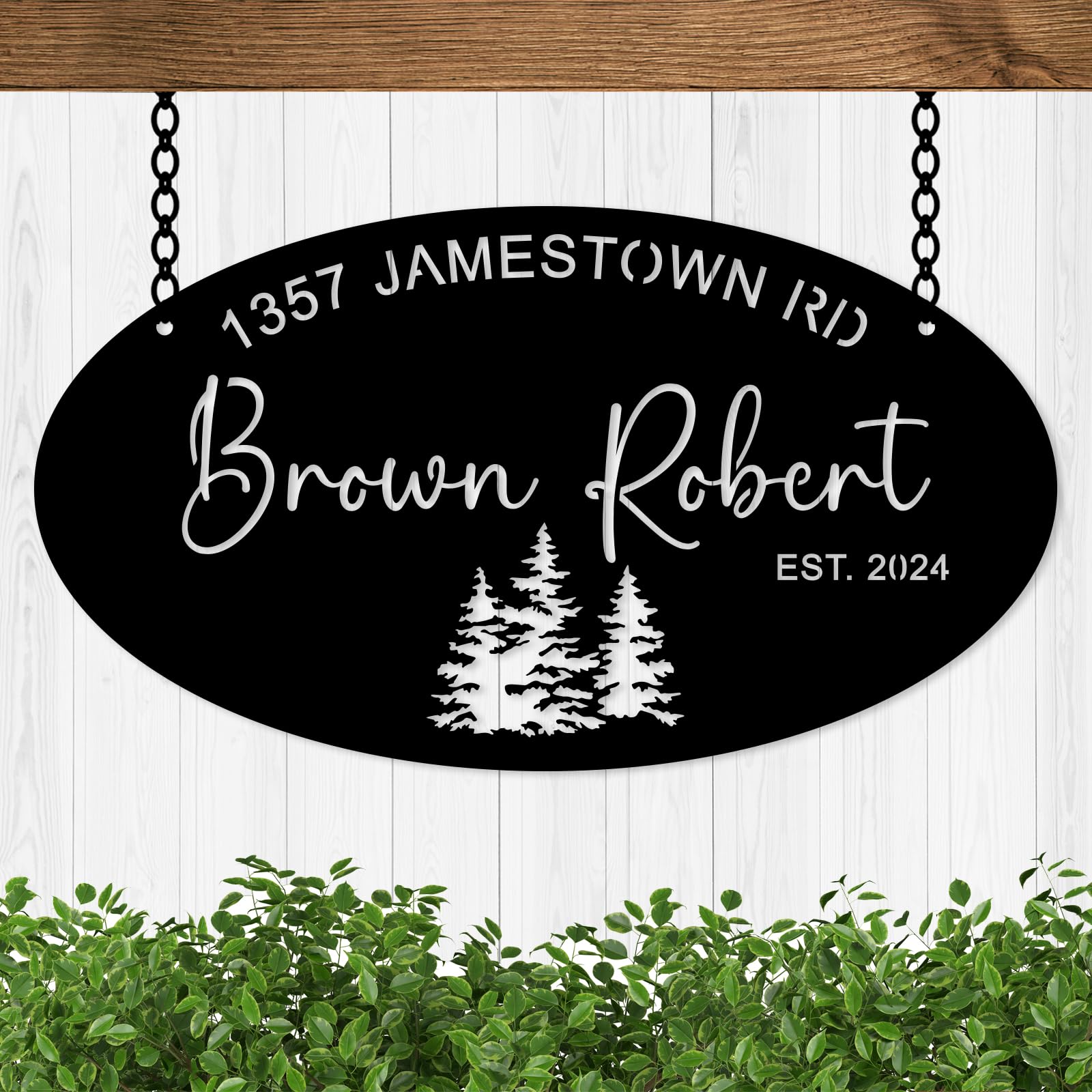 Unique Design: This Oval Metal Evergreen Sign is not just any sign. Its unique design adds a touch of personalized style, setting your mountain house apart from others. Premium Metal: Crafted with high-quality metal, this personalized metal sign offers durability and resilience against any weather condition, making it ideal for outdoor use. Personal Touch: With the option to personalize this door sign with your family name, it adds a special touch, inviting guests into your home with warm welcome. Mountain House Fitting: The sign design seamlessly fits into mountain house aesthetics, adding to the natural, rustic charm of your mountain abode. Perfect Gift: If you’re looking for a gift that is unique and meaningful, look no further! This Personalized Family Name Sign makes the perfect gift for family and friends, suitable for any occasion. Add a touch of elegance and personalization to your home with this unique Oval Metal Evergreen Sign. A perfect addition to your mountain house, this sign is more than just a sign. Carefully crafted with high-quality metal, this sign offers resilience and longevity, ensuring its shine doesn't fade in harsh weather conditions. Personalize it with your family name, making this sign the perfect welcoming gesture to guests.