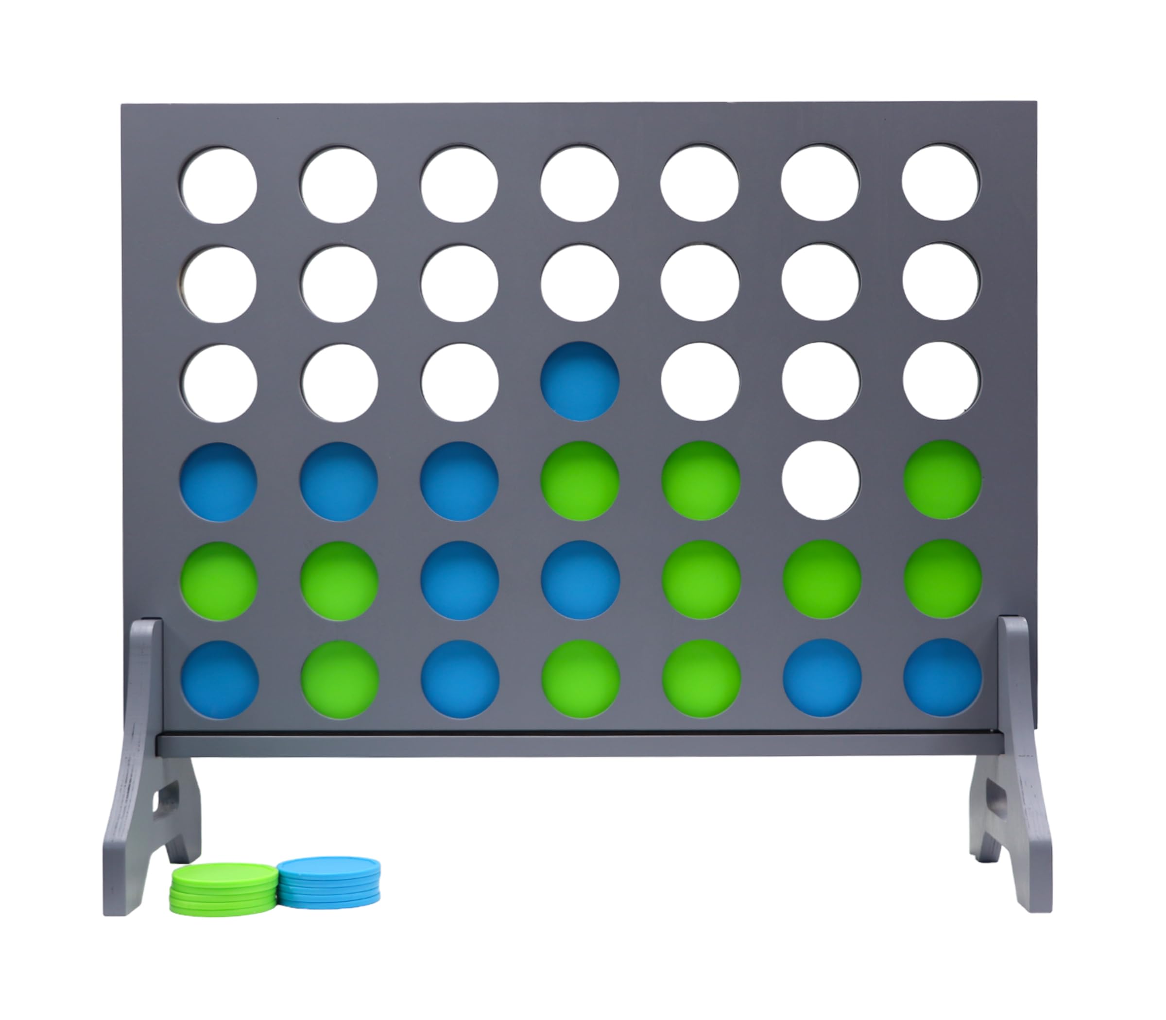 SOLID WOOD CONSTRUCTION – Our Oversized Sets are Made from 100% Premium Wood. Our Gigantic Game Board Measures 3ft x 2ft and comes with a Quick Puck Release Bar to Release Game Pieces. COLORED PUCKS – Choose colors to match your favorite school, sports team, or organization! ITEMS INCLUDED - 1 Premium Giant Four in a Row Frame, 1 Removable Gate, 2 Removable Legs, Carrying Case, 42 Playing Pucks (21 each of 2 colors) FUN FOR THE WHOLE FAMILY – Our Giant Four in a Row Yard Game is Great for Parties, BBQs, Weddings, Tailgates, or just Backyard Fun. Endless Hours of Fun for All Occasions! HEAD TO HEAD STRATEGY GAME – Each player takes turns dropping a puck into one of seven slots trying to be the first to link 4 of your color in a row (Horizontal, Vertical, or Diagonal). First person to get 4 in a row wins! After the game is finished, use the quick release bar to release the pucks allowing minimum reset times between games. Once you are done playing, use the carrying case to store and transport your set. SOLID WOOD CONSTRUCTION – Our Oversized Sets are Made from 100% Premium Wood. Our Gigantic Game Board Measures 3ft x 2ft and comes with a Quick Puck Release Bar to Release Game Pieces. COLORED PUCKS – Choose colors to match your favorite school, sports team, or organization! ITEMS INCLUDED - 1 Premium Giant Four in a Row Frame, 1 Removable Gate, 2 Removable Legs, Carrying Case, 42 Playing Pucks (21 each of 2 colors) FUN FOR THE WHOLE FAMILY – Our Giant Four in a Row Yard Game is Great for Parties, BBQs, Weddings, Tailgates, or just Backyard Fun. Endless Hours of Fun for All Occasions! HEAD TO HEAD STRATEGY GAME – Each player takes turns dropping a puck into one of seven slots trying to be the first to link 4 of your color in a row (Horizontal, Vertical, or Diagonal). First person to get 4 in a row wins! After the game is finished, use the quick release bar to release the pucks allowing minimum reset times between games. Once you are done playing, use the carrying case to store and transport your set.