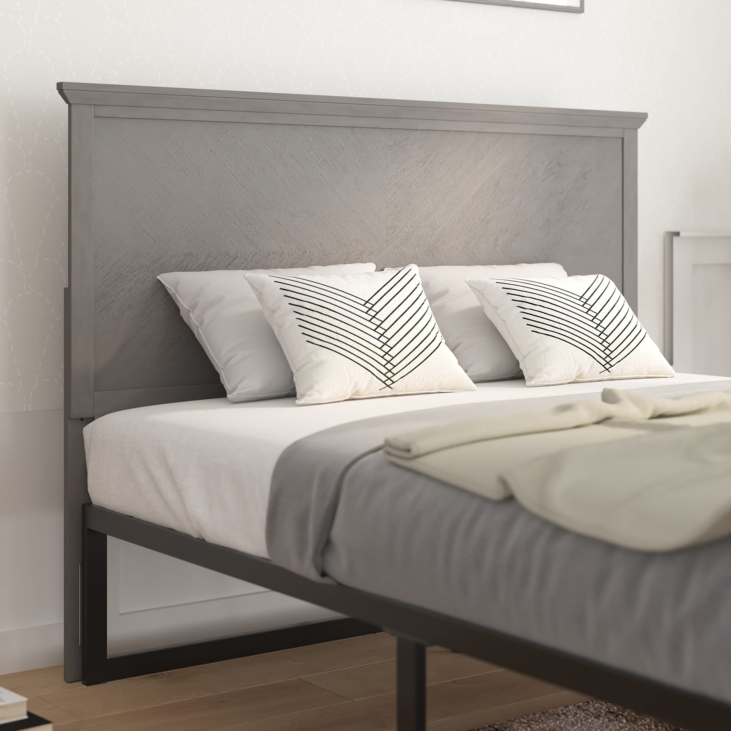 Taylor & Logan Feliz Queen Size Herringbone Pattern Solid Wood Headboard in Gray Wash