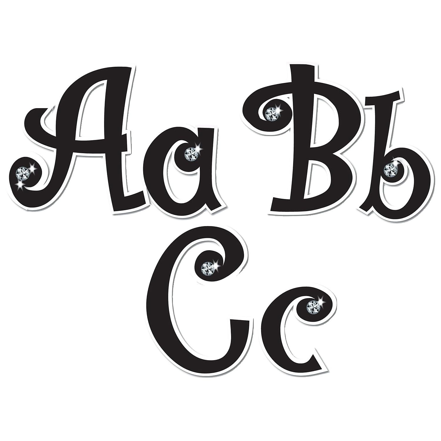 395 TOTAL PIECES - 258 letters, 33 numerals, 72 punctuation pieces, and 32 jewels. COATED FOR DURABILITY - Designed to be reused year after year, these cutouts are printed on coated paper. DECORATIVE - Add bling to these black letters to create the perfect headliner. PAIRS WELL WITH OTHER PRODUCTS - Teacher Created Resources has a wide range of classroom products and decorations that pairs well with related themes. Check out our matching products! EASY TO USE - Letters easily punch out. WHY TEACHER CREATED RESOURCES - For over 35 years, Teacher Created Resources has produced high quality educational materials for PreK–Grade 8. We also help teachers create stimulating learning environments by producing colorful classroom decorations.