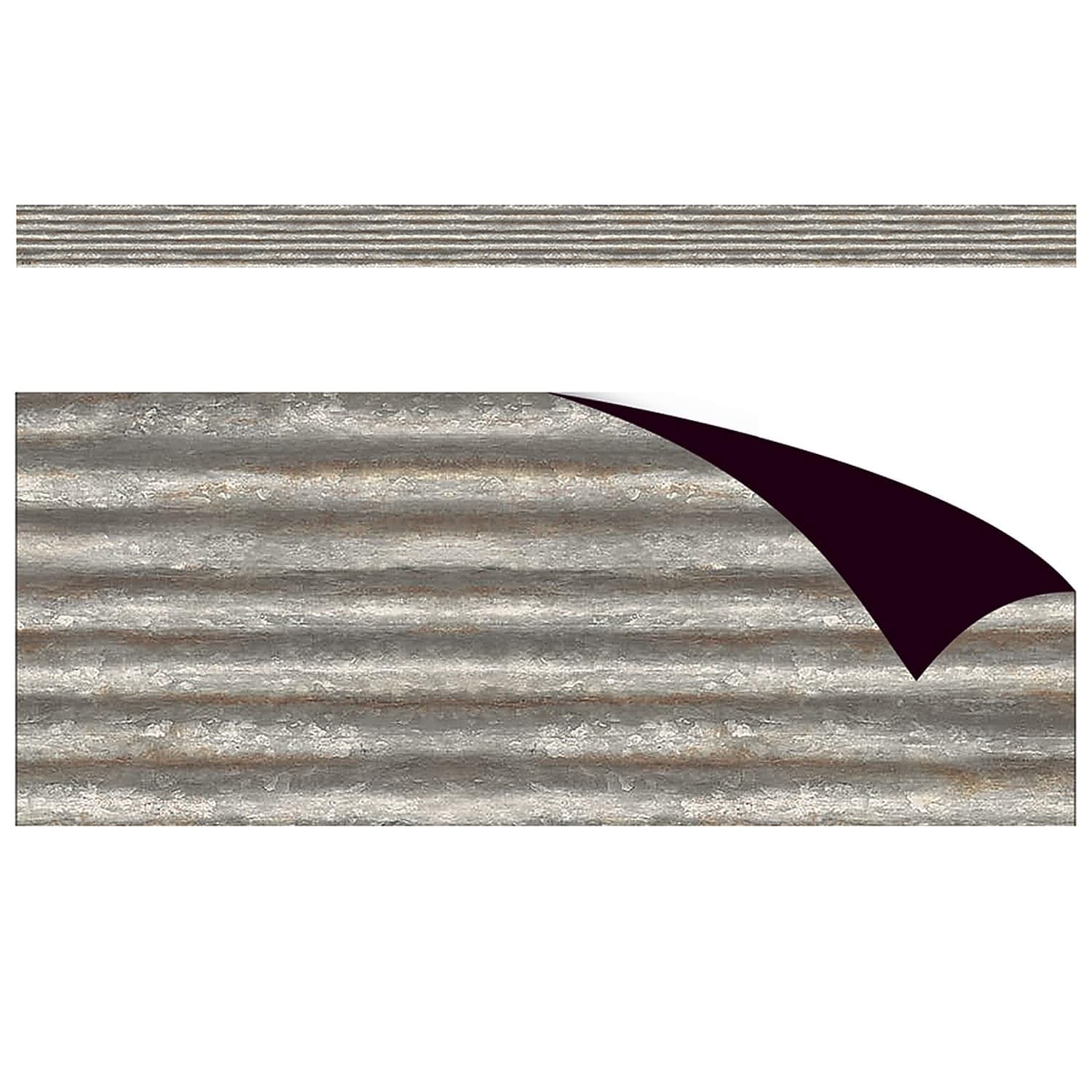 Sold as 12/Pack. Magnetic Straight Border. Border adds flair on other metal surface such as doors, desks, shelving, and bins. 1.5" x 24'. Cuts easily with scissors to make your own labels or game pieces. Corrugated Metal. Each magnetic border is 24" x 1½". 5+ years. 12 pieces per pack, 24' total.
