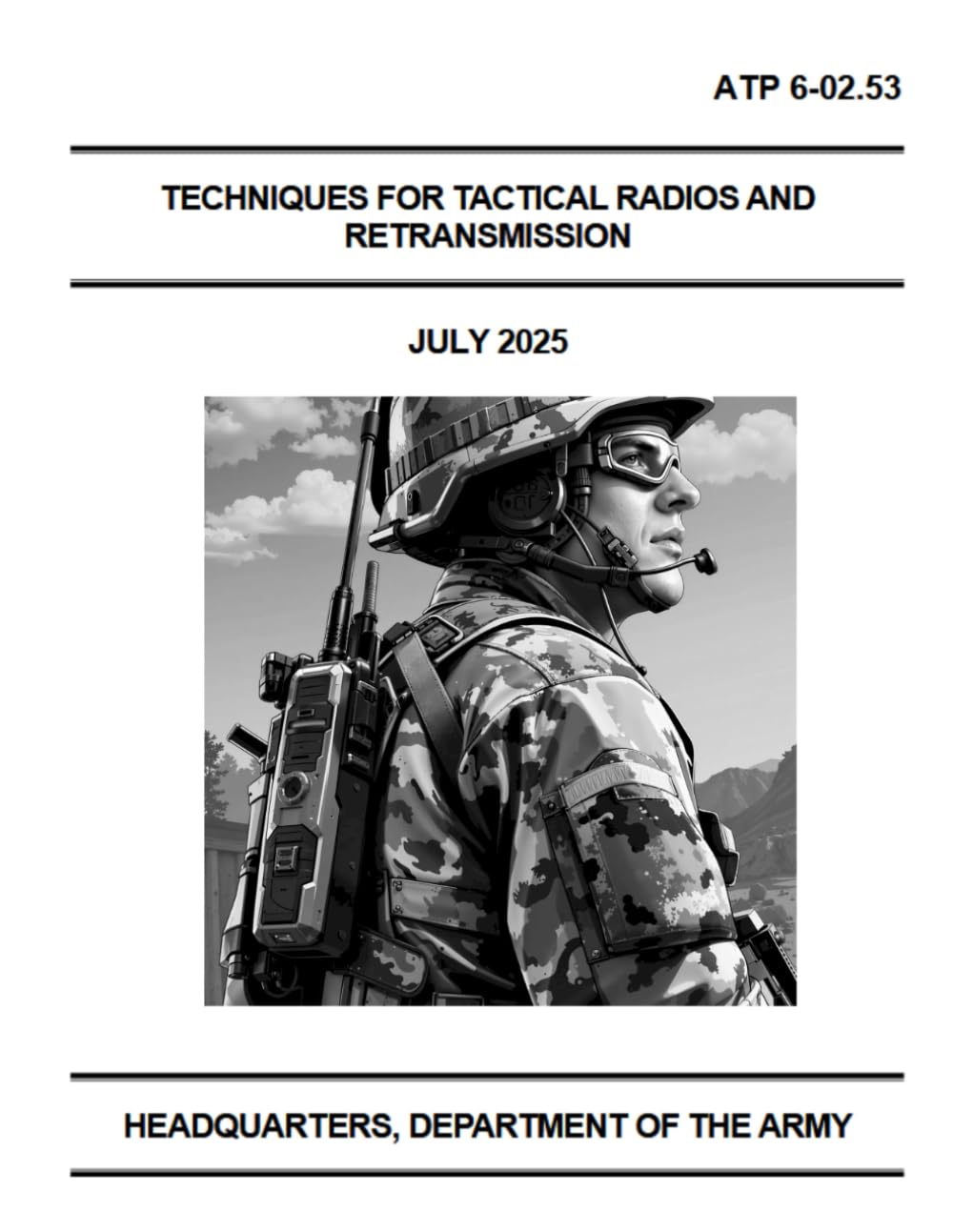 Techniques For Tactical Radios and Retransmission ATP 6-02.53 July 2025 NOTE: We added photographs of most of the radios mentioned in the text. ATP 6-02.53 Techniques For Tactical Radios and Retransmission expands on the foundational information about tactical radios and tactical radio networks in FM 6-02. Tactical radios are critical command and control enablers. Tactical radio networks empower subordinate decision making and allow integration and synchronization across all domains. Tactical radios and networks support the Army’s mission across the competition continuum. Fluid tactical situations in sustained operations require versatile and adaptable tactical radio networks. Tactical radios allow forces to move and communicate from higher echelons down to the squad level. Squad- level radios enable communication and situational awareness at the lowest level possible. This publication contains important developments regarding tactical radio operations with greater emphasis on the employment of tactical radio retransmission at echelons corps and below. ATP 6-02.53 has three chapters and nine appendixes: • Chapter 1 discusses the operational environment and examines challenges in a contested and congested environment. It includes an explanation of how tactical networks and radios enable command and control and situational awareness during Army operations. • Chapter 2 addresses the employment of tactical radios and signal support by Army echelon. It also addresses the importance of integrating tactical radios into command posts. • Chapter 3 introduces network planning and explains planning requirements and considerations for secure tactical radio operations. This chapter provides an overview of retransmission planning and employment and includes retransmission pre-combat checks and pre-combat inspections. This chapter also describes communications staff elements—planners, spectrum managers, and communications security account managers—and the importance of coordinated activities among staff elements during the planning process.