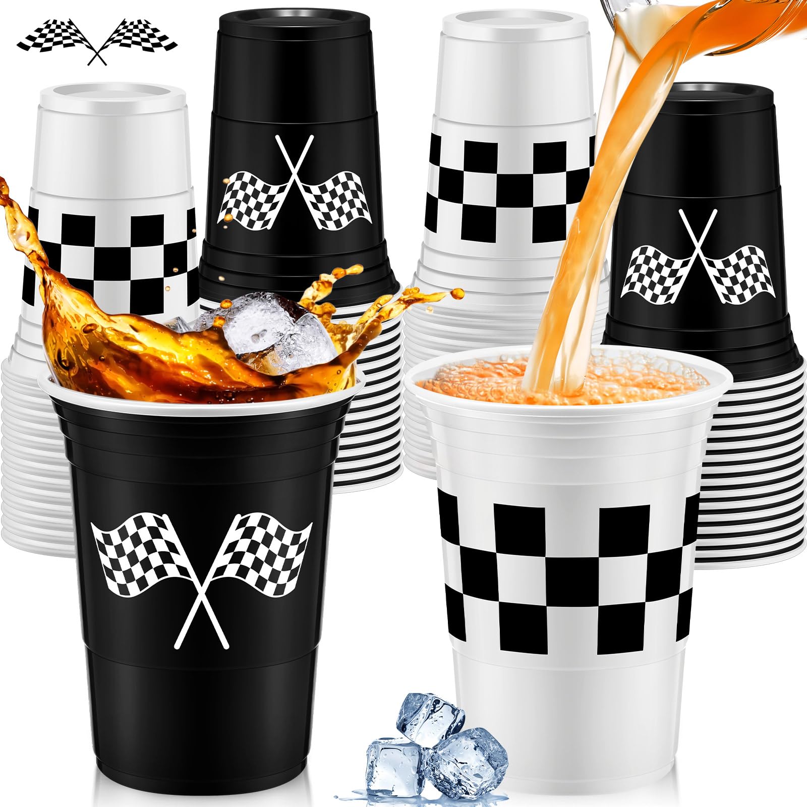 Checkered and Flag Design: the racing party supplies plastic cups adopt a checkered flag design, which are simple, but very classic and cool; Stylish black and white checkered and racing flag elements create a stronger sense of tension and atmosphere for the racing party Quality Material: these party race car cups are made of quality PP material, which is sturdy and durable, odorless and not easy to tear; They are also easy to clean, and you can safely use them to hold cola drinks and other liquids Sufficient Size: the checkered flag plastic cup measures about 3.66 x 2.48 x 4.72 inches / 93 x 63 x 120 mm (upper diameter x lower diameter x height) and has a capacity of about 16 ounces; Small size and light weight, it will not take up too much storage space, suitable for a variety of drinks at the party Versatile Application: the black and white checkered flag cups for party can meet your event needs very well, it is not only suitable for use in large scale racing competitions, racing-themed celebrations, to provide drinks to participants or spectators; But also suitable for birthday decorations and family parties; They can also become photography props to add more cool elements to your photos Package Includes: the package comes with 24 pieces of 16 oz checkered flag disposable beverage cups for party supplies, including 12 pcs in black and 12 pcs in white, and they are printed with checkered or flag pattern on both sides, to help bring more atmosphere to your birthday or anniversary party Features: Party Choice: The checkered flag cups set is a good choice for race car birthday party supplies and decorations. These cups are small and lightweight, making them suitable for theme parties at a variety of venues, and your guests can even take these classic cups home as party favors. Multifunctional Cup: In addition to drinks and other liquids, these cups for racing party supplies can also be applied to hold snacks, cookies, candies, bulk chips and more, making them multipurpose cups. Specifications: Material: PP Color: black and white Size: approx. 3.66 x 2.48 x 4.72 inches/ 93 x 63 x 120 mm (upper diameter x lower diameter x height) Capacity: approx. 16 oz Package includes: 24 x Checkered flag plastic cups Notes: Manual measurement, please allow slight errors on size. The color may have a slight difference due to different screen displays.