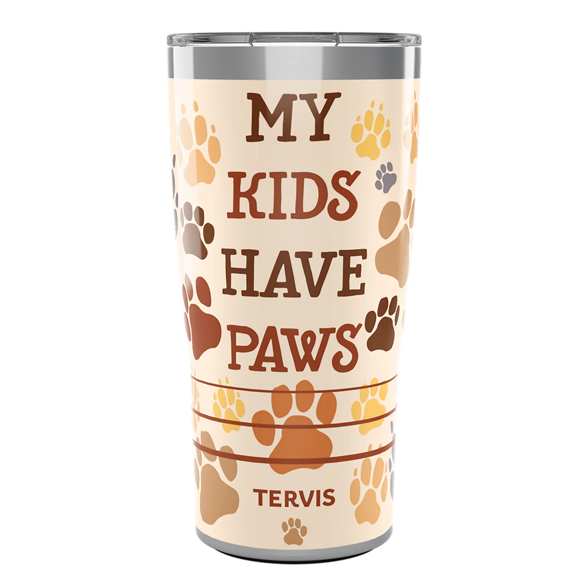 Tervis Traveler My Kids Have Paws Triple Walled Insulated Tumbler Travel Cup Keeps Drinks Cold & Hot, 30oz, Stainless Steel