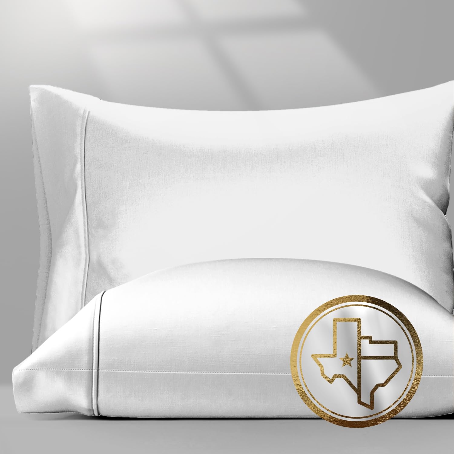 Indulge in Unmatched Luxury with Texas Linen Co.’s 1500 Thread Count Egyptian Cotton Pillowcases: Experience the epitome of luxury with our 1500 Thread Count Egyptian Cotton king size pillow cases set of 2, meticulously crafted for unrivaled softness and exquisite comfort. Made from extra-long staple cotton and enhanced with a sateen weave, these pillowcases redefine relaxation Pillow Cases King Size Set of 2: Our generously sized king size pillow cases effortlessly accommodate your pillows, boasting a luxe hemstitch and envelope closure for a refined, neat aesthetic. Sold as a king pillow case set of 2, they measure 21” x 41” in size—a perfect gift for loved ones or a lavish addition to your own bedding ensemble Embrace Divine Softness and Silkiness for a Restorative Sleep: Dive into the premium comfort of our 100% Egyptian cotton king pillow cases set of 2, designed to rejuvenate and refresh. With quintessential cooling properties and breathability, they ensure a deep, restful sleep, perfect for unwinding after a long day. Independently validated by OEKO-TEX for safety, they're ideal for both kids and adults Luxuriate in the Opulence of 1500 Thread Count Egyptian Cotton King Pillow Cases: Immerse yourself in the majestic thickness and luxurious drape of our cooling king size pillow covers, reminiscent of the lavish bedding found in prestigious 7-star hotels. Feel the difference from the moment you lay your head down—try our king pillowcases set of 2 and experience true indulgence Built to Last—10x Durable with Pill, Fade, and Shrink Resistance: Our Egyptian cotton king size pillow cases are mercerized to enhance luster, softness, and durability. Enjoy lasting color retention, and resistance to pilling and shrinking, ensuring enduring beauty wash after wash. While king size pillow case may naturally wrinkle due to cotton's composition, a quick iron after drying leaves them with a smooth, flawless appearance Unapologetically soft and glamorous, Texas Linen Co.’s 100% Egyptian Cotton Pillowcases are what dreams are made of. Crafted exquisitely from extra long staple cotton for longer and finer fibers that make stronger and more durable pillow cases. Sateen weave adds a magnificent, royal texture for an ultimate touch of comfort in the bed room. Made from the fabric of the highest purity, our 100% Egyptian cotton pillow cases are wonderfully cool, light, and breathable for a divine sleeping experience throughout the season. Perfect for hot sleepers prone to night sweats. Characteristically thick and heavy, these cotton pillowcases are similar to the ones found in the presidential suites of the 5-star hotel. Our ultimate indulgence Egyptian cotton sheets and pillow cases collection are mercerized for better luster, color, and softness. These high quality Egyptian cotton pillow cases don’t pill or fade out in color easily. Machine wash in warm water at home. Gentle cycle wash separately. Tumble dry low. Use non-chlorine bleach only if needed. Our 100% Egyptian cotton pillow cases wrinkle after wash due to their natural composition. To minimize wrinkles, put them in the machine with a few dryer balls or iron afterward. These pure 100% cotton pillow case sets are sized generously to fit even slightly oversized pillows. The 4-inch Z hem and envelope closure ensure the large pillows stay tucked in for a neat, sophisticated look. It’s sold as a pillow case pair, but if you need a complete 1500 thread count sheet set with a flat or top sheet, fitted sheet, and pillow cases, we have that too