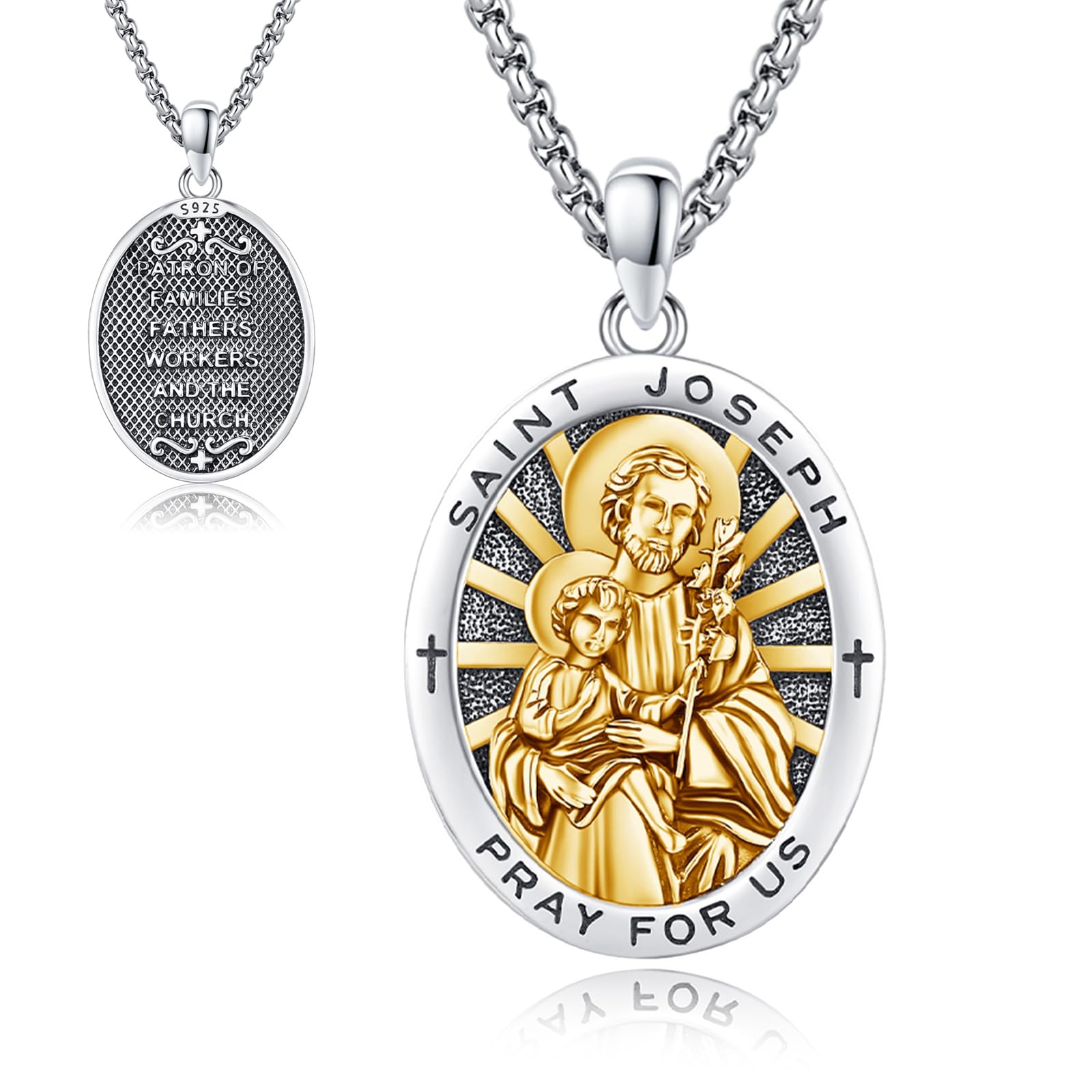 St Joseph Necklace for Men Gifts: St Joseph medal for men silver the perfect gift for you, your lover, friends, father, mother on your birthday, wedding, Mother's Day, Father's Day, banquet, Thanksgiving Day, Valentine's Day Christmas