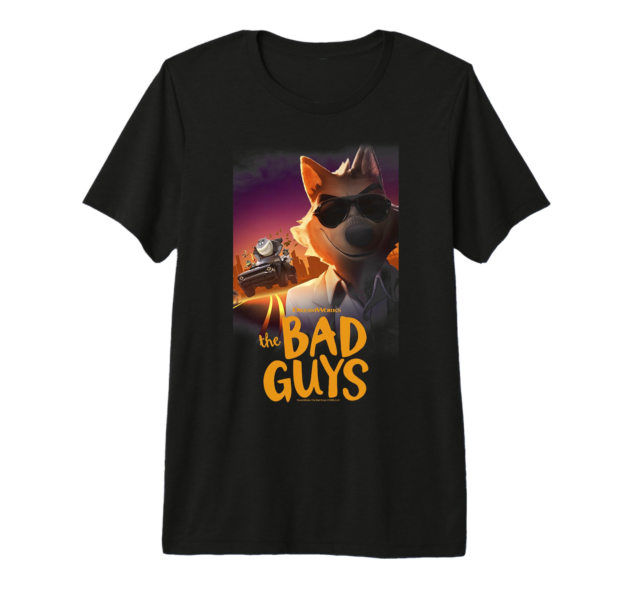 Officially Licensed The Bad Guys Apparel for Men - Women - Boys and Girls; Ms. Tarantula T-Shirts; Mr. Snake T-Shirts; Mr. Wolf T-Shirts; Mr. Shark T-Shirts; Mr. Piranha T-Shirts; Movie Poster T-Shirts; Getaway Car T-Shirts; Mr. Wolf Selfie T-Shirts; 22NVBD00005A-001 Crafted from a unique 40 singles tri-blend fabric, offering a lightweight, ultra-soft feel Classic crew neck design with side-seam construction ensures both comfort and a flattering silhouette Lighter colors are semi-sheer