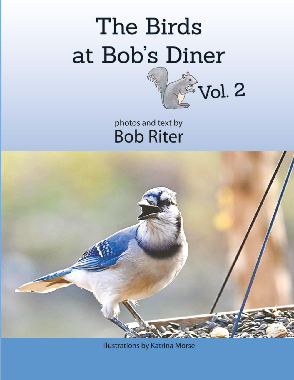 The Birds at Bob’s Diner Vol. 2 is a new collection of photos of the birds (and other creatures) that visit the feeders just outside of Bob Riter’s window in Ithaca, NY. Bob helpfully and amusingly interprets their expressions so that all can understand. This large-format edition was designed for those who might benefit from larger photos and larger text. It is perfect as a gift for older individuals.