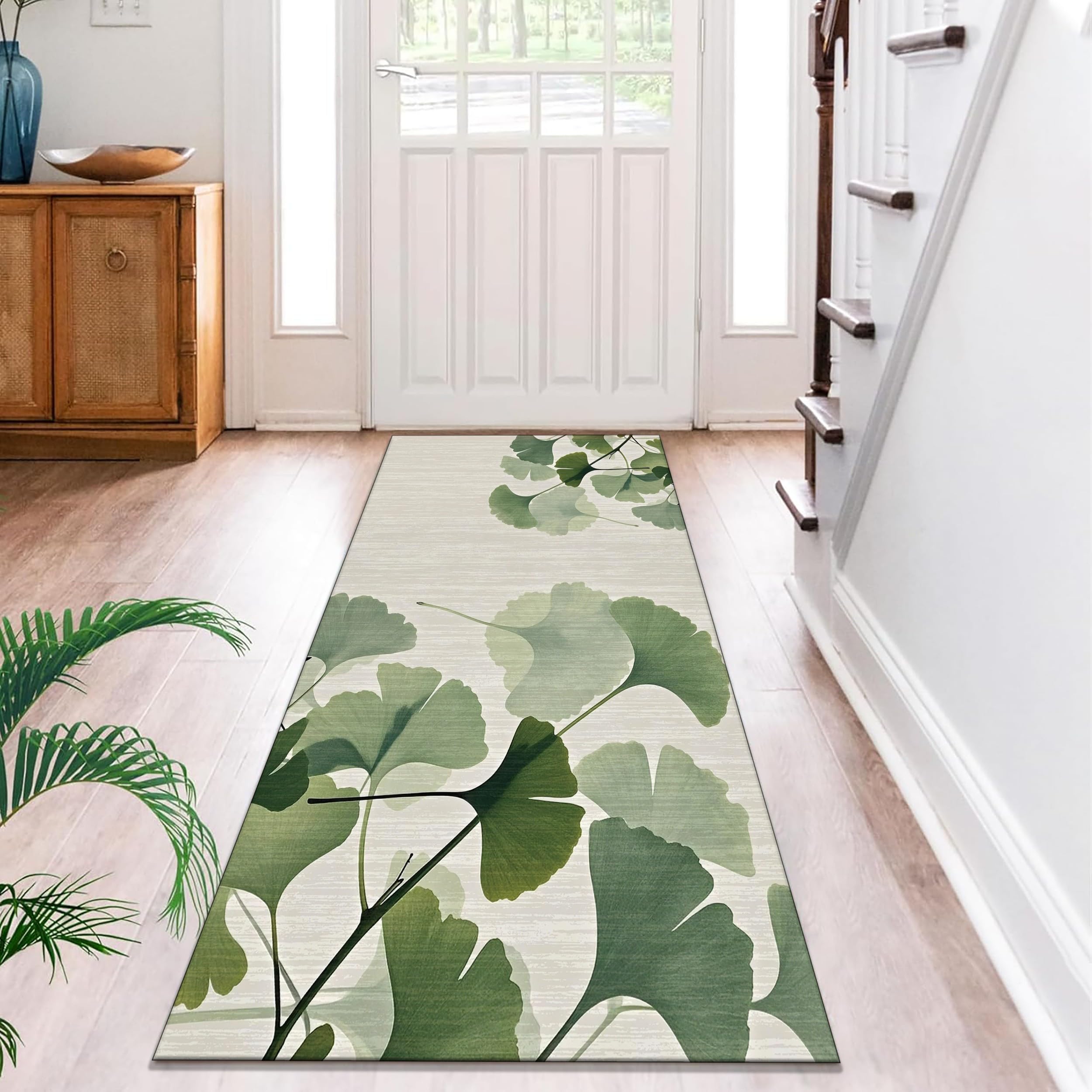 Inspired by Nordic nature, ginkgo leaf patterns with swirl lines and retro textures create artistic appeal. Made of high-density polypropylene fiber for durability, with non-slip TPR backing.