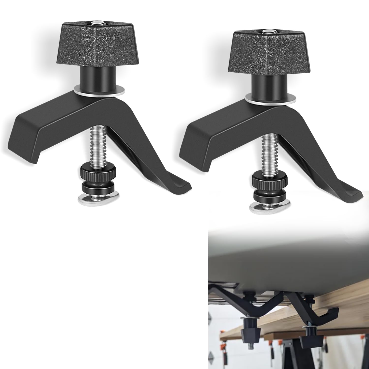 【Wide Compatibility】These Track Clamps designed to fit for a variety of track systems, such as Clamp Trak and Mini Trak, offering versatility and allowing users to integrate them with different woodworking setups. 【Durable Materials】These Track Clamps made of plastic polymer, ensuring the clamps can withstand the rigors of woodworking. They have a durable molded construction, which not only gives them a precise shape and structure for reliable clamping but also enhances their overall strength and stability. 【Easy Attachment】These Track Clamps can be easily attached to track extensions and starting blocks when clamping is needed, providing convenience and flexibility in different woodworking operations. 【Strong Clamping Force】These Track Clamps can provide a strong clamping force to hold workpieces firmly in place, ensuring stability during woodworking processes such as cutting, drilling, and assembling, and helping to improve work accuracy and quality. 【Simple Installation】This kit comes with 2* clamp bodies, 2*mounting bolts, 2*washers, 2*threaded knobs, and 2*knurled locking nuts. The installation process is simple, allowing users to quickly attach the clamps to the track without the need for complex tools or professional skills. 【Satisfaction Guarantee】We are dedicated to delivering professional and heartfelt service to enhance your shopping experience. If you're not completely satisfied with your purchase, simply return it within 30 days. Additionally, we offer a 12-month warranty for your peace of mind. Track Clamps for Woodworking Compatible with Universal Clamp Trak Kits