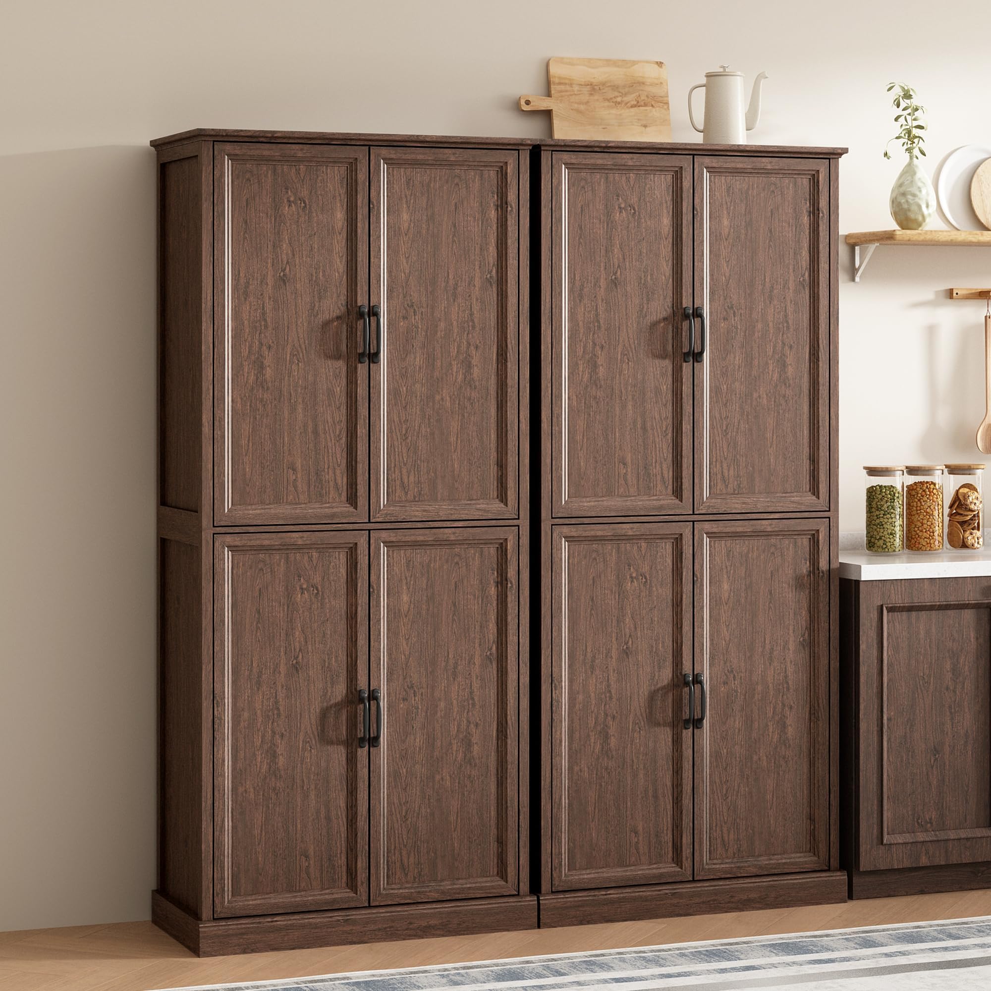 Tradare 71'' Tall Pantry Cabinet Set of 2, Farmhouse Kitchen Pantry Storage Cabinet with Barn Door and Adjustable Shelves, Rustic Wood Freestanding