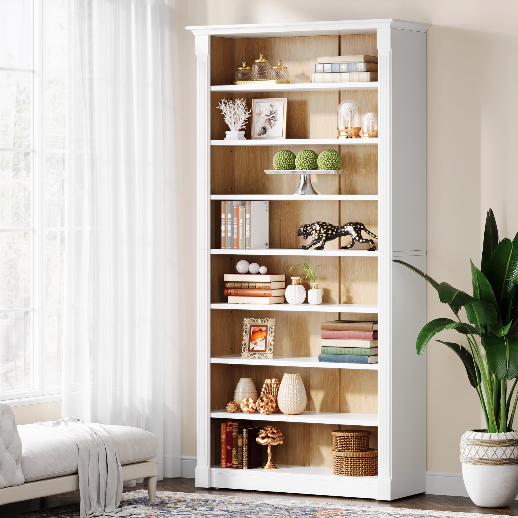 【Customizable and Detachable Shelves】 Our bookcase comes with 7 versatile shelves that can be adjusted and detached to accommodate items of various heights. Whether tall vases or small trinkets, you can arrange them effortlessly to create your desired display. 【Ample Storage Space】 Standing at 70.9 inches tall, this bookshelf offers 8 spacious shelves for displaying your family photos, showcasing your model collection, or storing everyday essentials. This 8-tier bookcase is perfect for your living room, bedroom, and home office. 【Sturdy and Durable】 Made from high-quality engineered wood, our modern bookshelf is built to last and is easy to care for. With a stable structure and an anti-tip device, you can rest assured that your items will stay safe and secure. 【Sleek and Elegant Design】 Our wooden bookcase features a sleek and modern design that will complement any room in your home! The smooth white paint finish combined with the natural oak wood creates a harmonious blend of modernity and elegance, with vertical stripes on the side, adding an elegant and refined touch to your space. 【Easy Installation and Excellent Customer Service】 We provide comprehensive installation instructions and excellent customer service to ensure that you have a hassle-free experience. If you have any questions or concerns, our friendly and knowledgeable team is always here to help. Whether it's your cozy study, vibrant living room, or dreamy bedroom, our Adjustable Modern Bookshelf is the perfect companion. It's time to elevate your space with a touch of practicality and charm!