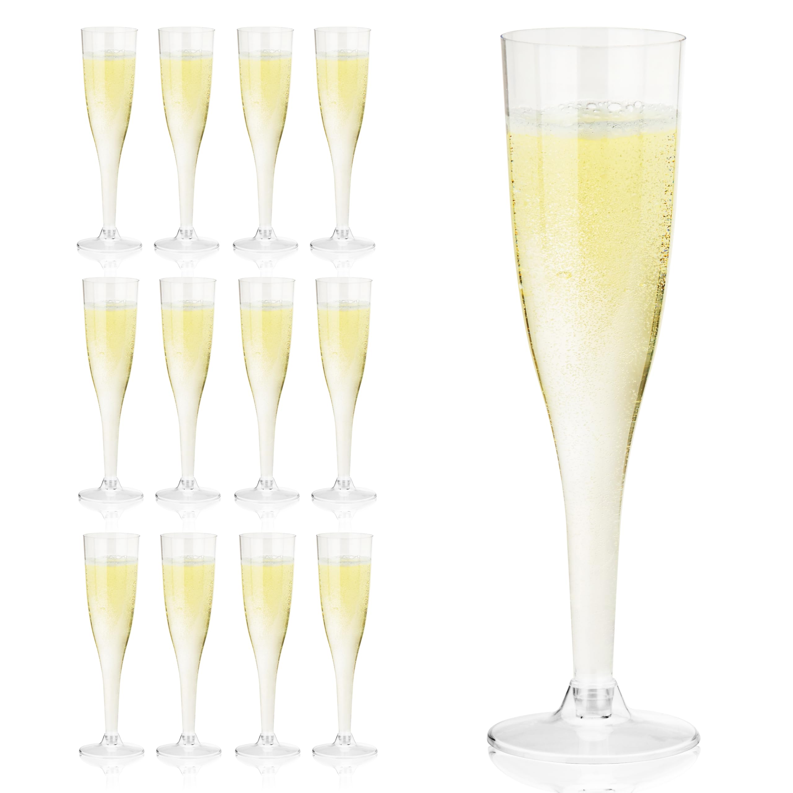 STEMMED PLASTIC CHAMPAGNE GLASSES - These clear plastic champagne flutes are a great upgrade from red plastic cups. Shaped like a tall stemmed sparkling wine glass, this 12 piece set of plastic stemware is sure to be a hit at any barbecue or picnic. HOLDS 5.5 OZ OF PROSECCO OR CHAMPAGNE COCKTAILS - Made from plastic, this lightweight outdoor drinkware has a 5.5 oz. capacity. Easily store and transport these wine glasses to any party for a safe and easy way to serve wine, cocktails, and more. STREAMLINED STORAGE AND SIMPLE ASSEMBLY - Shipped in 2 pieces for convenient, space-saving storage, these disposable plastic flutes are easy to assemble. Just pop the bowl on the base and serve your French 75s, cocktails, or champagne. THE PERFECT SUMMER POOL PARTY ACCESSORY - These wine glasses are sure to be a hit at any barbecue, pool party, or beach trip. Gift these patio-friendly cups to anyone who loves to host patio happy hours or serve frosé in the jacuzzi. EVERYDAY BASICS DONE BETTER - True makes entertaining simple and elegant with stylish, practical serveware, dishes, barware, and entertaining accessories. Combining streamlined design with functional utility, True elevates the basics.