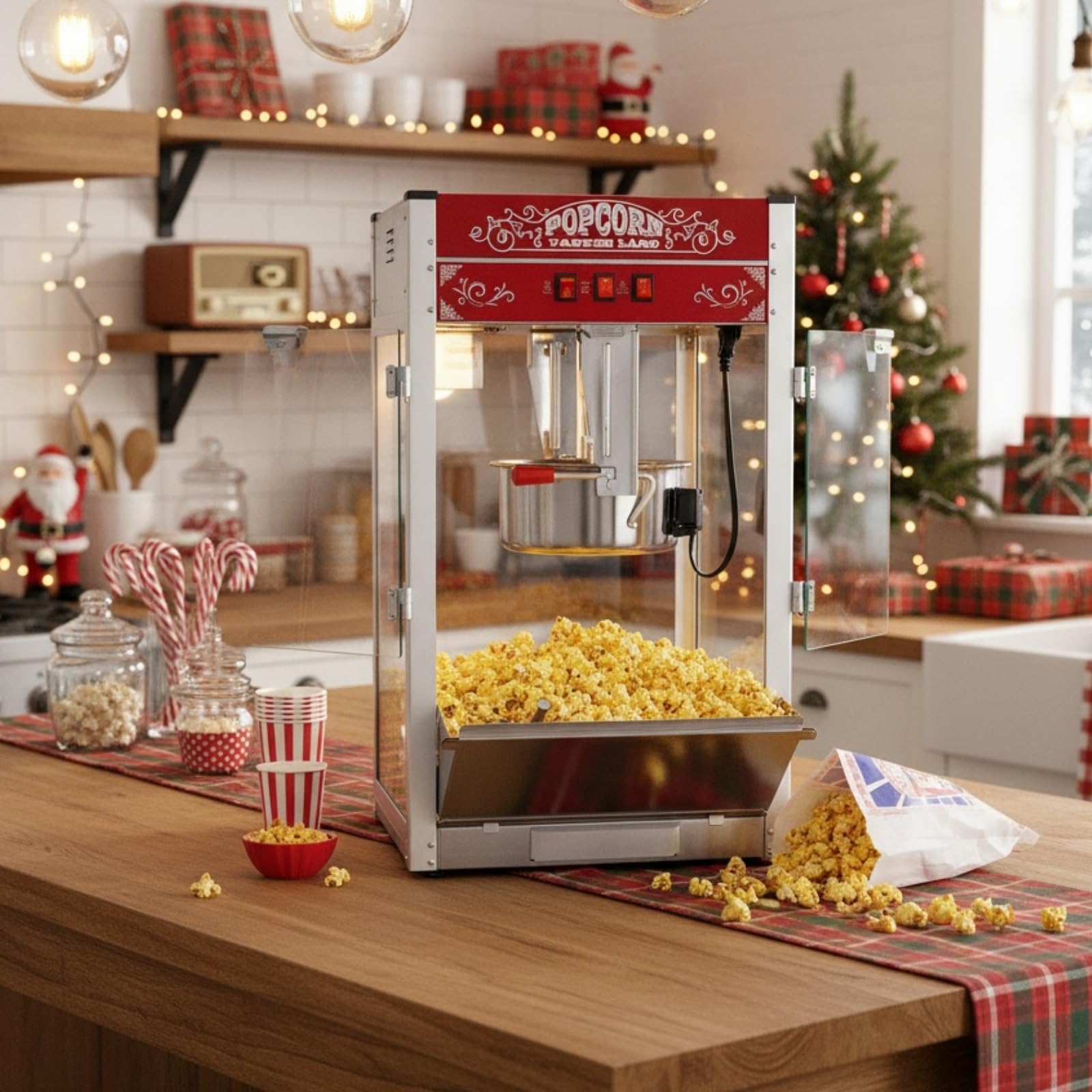 Massive Output: This commercial-grade popcorn machine features a 16 oz kettle that pops up to 80 cups (640 oz) of popcorn per batch, perfect for busy concession stands. The kettle preheats in minutes, ensuring a steady stream of hot popcorn for sports fans, festival-goers, or party guests—no more long waits for fresh snacks All-Inclusive Accessory Set: The tabletop design comes with a popcorn scoop for serving, plus two measuring spoons for corn and oil—everything you need to start popping right away. The accessories make it easy to measure ingredients accurately and fill cups quickly, so you can focus on delighting customers User-Friendly Warming & Cleaning: A hinged cover under the warming deck lets you easily access popped popcorn as it piles up, while a removable crumb tray catches stray kernels. No more fumbling to collect snacks or cleaning messy chambers—just slide out the tray to dispose of unpopped kernels effortlessly Steady Performance for High-Crowd Scenarios: Whether it’s a packed stadium, a lively fair, or a backyard birthday bash, this machine keeps up with demand. The fast preheating and large batch size mean you can serve continuous rounds of fresh popcorn, keeping lines moving and everyone satisfied Simple Operation for Any User: Designed with intuitive controls, even first-time users can master popping perfect batches. The straightforward setup and included accessories eliminate guesswork, making it ideal for businesses, event organizers, or anyone who wants to serve restaurant-quality popcorn with ease