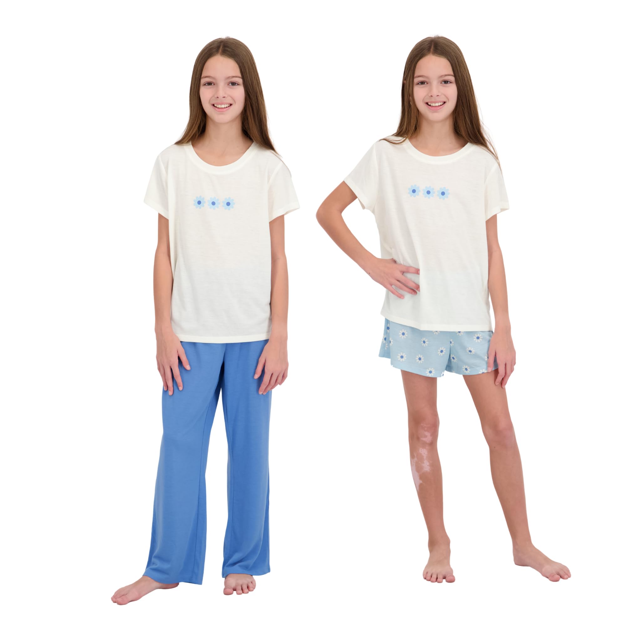 Ultra-Comfortable Girls Pajamas Set – Dive into dreamland with US Angels kids pajamas, where comfort reigns supreme! A cozy, loose fit design, breathable fabric & gentle elastic waistbands make this girls’ sleepwear set the answer to sweet dreams All-Season Fabric – Made with our signature soft poly jersey, US Angels pajama sets are super-soft, lightweight and oh-so-cozy. With sleep shorts, sleeping pants and a short sleeve shirt, these pajamas for kids keep them comfy all year Girly Patterns – Add a touch of magic to bedtime with adorable girls pjs. Featuring soft, pastel colors including floral, strawberry, avocado and pink prints, these pjs for girls bring a sense of calm and wonder to any little or big sleeping beauty No Laundry Woes – These cute pajamas for girls are machine washable and dryable for ultimate convenience. The durable fabric maintains integrity wash after wash, so you can spend less time worrying about laundry and more time enjoying peaceful nights Perfect Gift: Beautifully packaged pajama set makes an ideal birthday, holiday, or special occasion gift. Every teen girl will love the comfort and style! Available in multiple adorable patterns PERFECT GIFT IDEA: Beautifully packaged pajama set makes an ideal birthday, holiday, or special occasion gift. Every teen girl will love the comfort and style! Available in multiple adorable patterns. Girls 3-Piece Premium Pajama Set featuring tee, pants, and shorts. These kids pajamas are designed for a loose fit. The perfect pajama for girls all-year wear, featuring shorts for Spring and Summer, and lightweight pants for Fall and Winter. Elevate your daughter's sleepwear collection with our Premium Girls Pajama Set in size 5, 6, 7, 8, 10, 12, 14, and 16! Crafted from our signature lightweight poly jersey, these pajamas are comfortable, and stylish. Our designs include florals, avocados, strawberries, and are available in colors like pink, mint, blue, and ivory, that little girls, big girls, and teen girls will absolutely love. The breathable, ultra-soft fabric is cool on hot summer nights while providing cozy comfort year-round. The loose fit, short sleeve tee features a loose cut . Paired with coordinating shorts , this set offers the perfect balance of style and comfort. These pajamas are machine washable. We recommend washing inside out. Unlike ordinary pajamas that lose shape after washing, our premium sleepwear maintains its softness, color vibrancy, and perfect fit even after countless wash cycles. The high-quality jersey fabric resists pilling and fading, ensuring your daughter enjoys these pajamas for seasons to come. Cute enough for for sleepovers, lounging around the house, or everyday sleep, this pajama set is a must-have addition to any girl or teen's wardrobe. The comfortable design promotes restful sleep while looking stylish enough to wear before bedtime, or even out of the home. Makes a thoughtful, practical gift that any teen girl will appreciate! Available in multiple eye-catching patterns that showcase her personality and style preferences. Give the gift of comfort, quality, and style with our premium girls pajama set! Starting the day right begins with a good night's sleep Our Story Meet Hank, NYC dad to Elliot (10), Stanley (8), and Sally (4). Fed up with scratchy, uncomfortable PJs bothering his sensitive-skinned children, he took matters into his own hands and created US Angels – comfy, loose-fitting, flame-retardant pajamas for kids. Tested and adored by his own little ones, your kids are sure to love them too! Ultimate Comfort Watch your kids drift off into dreamland wrapped in luxury with US Angels girls’ pajama sets. Made from ultra-soft and stretchy 100% polyester, these loose fit kids pjs give your child a cuddly embrace all night long, while the elastic waistband ensures a comfortable fit as they grow – they make bedtime a breeze and mornings extra cheerful! Fun and Convenient Kids Nightwear These US Angels kid pajamas are adorned with adorable designs and pastel colors, adding a peaceful, dreamy element to little & big girls’ bedtime. They’re fun girls sleepover pajamas or for quiet nights lounging at home. Reliability in wash and wear is given with easy machine-washable materials built for extended durability. All-Season Fabric - Winter and Summer Pajamas for Girls This 3-piece set is your go-to for year-round comfort! With sleeping shorts for warmer nights in summer, and long pants for cooler evenings during winter and Christmas time, bedtime is always covered. Each pack contains - 1x girls short sleeve t-shirt - 1x long girls pajama pants - 1x pajama shorts Available sizes - Girls pajamas size 7-8, tween girls pajamas size 10-12, teen girl pajamas size 14-16 Adorable and Gift-Worthy In search of the ideal present for your little ones or grandkids? Bring joy and coziness to their nights and mornings with this ultra-soft pajama gift set. The fun designs and snuggly fabric ensure US Angels jammies are a hit at any occas