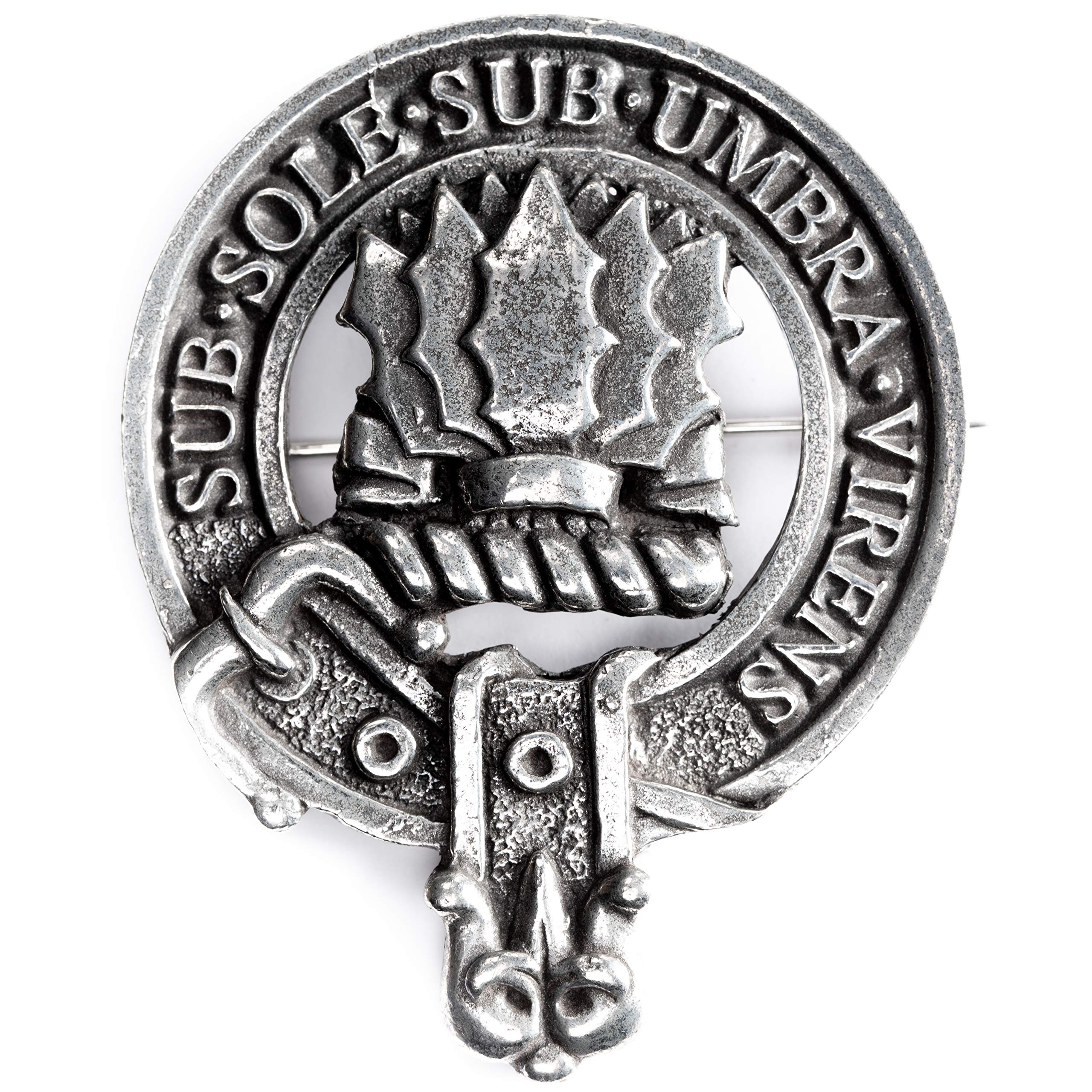 United Kingdom Show off your clan pride with the Clan Crest Cap Badge! You can wear it on your Balmoral or Glengarry OR you can give it to your betrothed as a brooch. Dozens of Scottish Clans names are available. Clan Motto: Sub sole sub umbra virens (Flourishing both in sunshine and in shade)