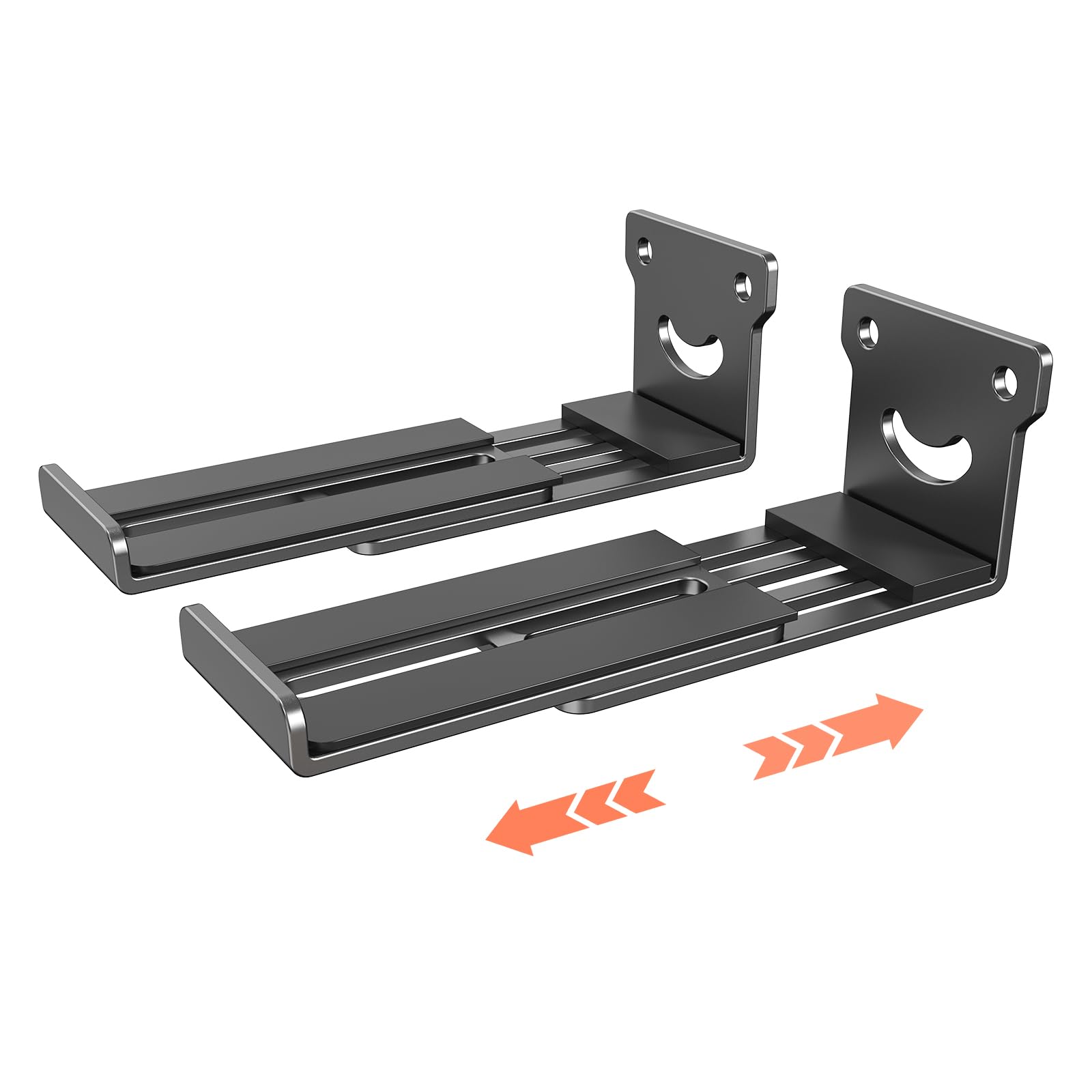 Universal Soundbar Mount: This wall mount is compatible with most speakers from Samsung, Sony, Bose, LG, Vizio, TCL, Yamaha, JBL, Polk, Roku, Sonos, Denon, Klipsch, Hisense and more. Adjustable Depth: This soundbar mount features a locking screw at the bottom, allowing you to easily adjust the mount's depth (3.3–6.1 inches) to perfectly accommodate most soundbar brands on the market. Simply adjust the mount's depth according to the thickness of your soundbar Sturdy Design: Featuring a professional structural design and made from high-quality, thickened, reinforced steel, this soundbar wall mount can easily support soundbars weighing up to 40 lbs/18 kg Bring Better Audio Experience: The soundbar stand is equipped with all-around soft, non-slip EVA pads to prevent the soundbar from scratching or sliding, reduce vibration during operation, and enhance the sound quality of the speakers Easy To Assemble: This soundbar bracket is compatible with a variety of wall types (including drywall, wooden studs, concrete walls, and other flat surfaces). The product comes with a double bracket structure and a complete set of installation hardware, as well as detailed installation instructions, making installation easy Universal Soundbar Wall Mount Bracket, Dual Metal Soundbar Shelf for Samsung, LG, Sony, Vizio, Bose, JBL and More Sound Bar Mounts Under TV, Depth Adjustable 3.3"-6.1", Holds up to 40 lbs