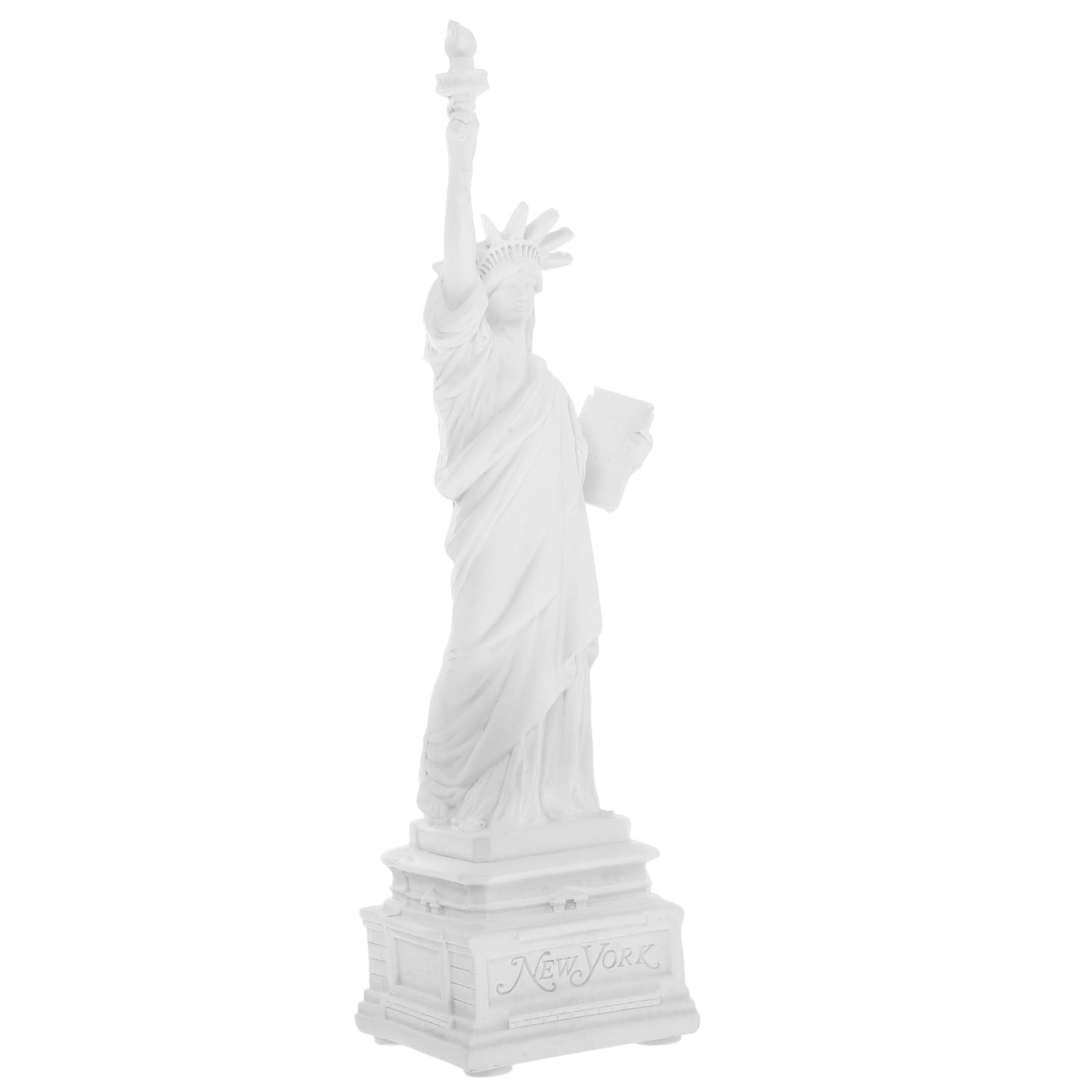 This statue of liberty figurine measures approximately 8.65 x 2.16 x 2.16 inches, crafted from synthetic resin in a classic white finish.Its clear contours and lifelike features capture the iconic symbol of freedom and democracy with detailed precision.Ideal as a home statue decor, it adds an artistic touch to living rooms, studies, or office spaces.This small statue is also a meaningful travel keepsake, perfect for commemorating visits to historic landmarks.The design suits collectors and creative decorative displays, making it a versatile addition to desktop or shelf arrangements.Use it as a unique accent piece during holiday seasons or as part of your everyday decorative collection to enhance your home's artistic atmosphere.