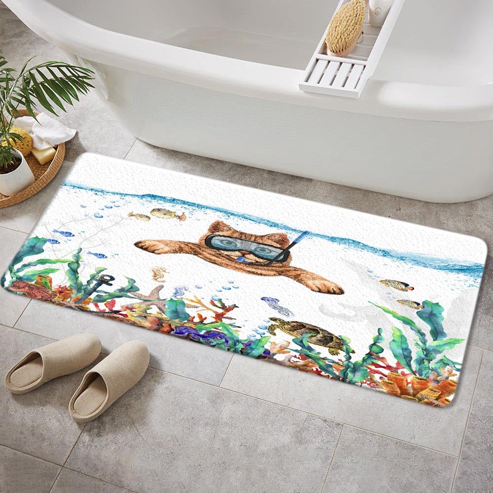Material: bath rugs are made of flannel, soft comfortable and quite textured. Perfect home bathroom decorations for your family. Bath Mat Design: Our mats are clearly printed and rubber backed to protect floors from water damage. Bath Mat Design: Our mats are clearly printed and rubber backed to protect floors from water damage. USE: This rug will bring a range of pastel colors to your room. It can also be used as a door mat, indoor/outdoor mat, kitchen rugs, floor mat. Care Instructions: Hand Washable or Machine Washable Cold Water Fine Cycle Hang Dry Only It goes well with shower curtains and any other bathroom accessories in a variety of colors. Bath Rugs: