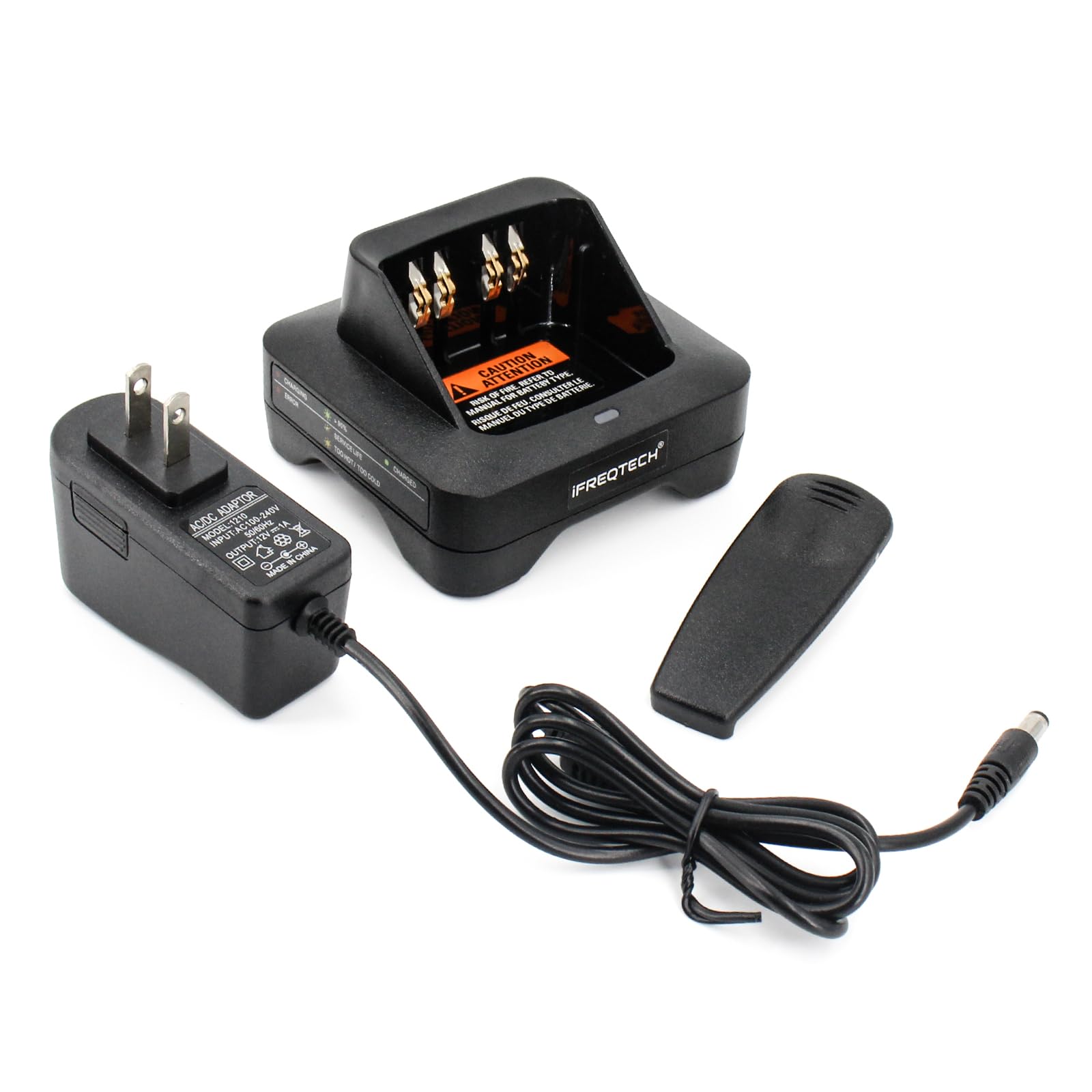 ►This NTN8831 desktop rapid charger is specifically designed for the DXTS2500 XTS1500 XTS5000 XTS4250 XTS3500 XTS3000 XTS2500 XTS2250 MTX9000 MTX8000 MTX900 MTS2000 PR1500 MT1500 HT1000 etc. It ensures fast and efficient charging for your radio batteries. ► Fit for Motorola PNTN9858 NTN9815 NTN8923 NTN8294 NTN8923AR NNT7335B NTN7143CR NTN7144 Walkie Talkie battery ( Ni-CD, Ni-MH and Li-ion ). ►Replace compatible for motorolaNTN8831 WPLN4144 WPLN4111 PMPN4135 radios battery charger. ► Unique multi color Indicator lights shows design to monitor charging status,over-current protection, over-voltage protection, short circuit protection. ► Please note that every product available in our "IFREQTECH" store is a replacement part and not an Original Equipment Manufacturer (OEM) product.Any references to brand names or model numbers are for the sole purpose of indicating compatibility. Package Included: