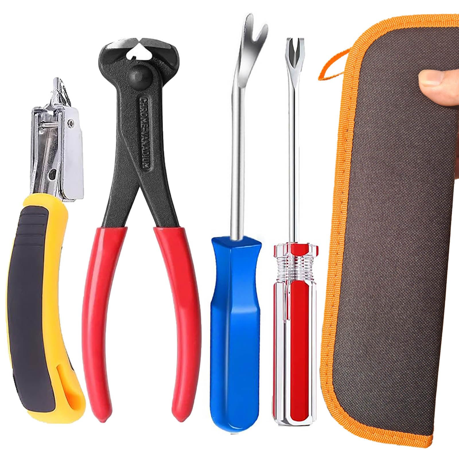 【Package Information】4 Pcs Nail Removal Tool Set includes 1 end cutting pliers, 1 nail remover.1 V-nail puller and 1 U-nail puller.The 4-in-1 staple remover tool set comes in 4 different types to perfectly fit your everyday decorating need,help you to easily take off staples from wooden case, furniture, floor, carton, photo frame, carpet and others.Tiles, Mosaic Cutting. And the tools are packed in the quality zipper case, convenient to store and carry, satisfy your various needs 【End Cutting Pliers】Made from high carbon steel with soft plastic coated grip, strength, rust-resistance for long service time. Heavy-duty double molded grips minimize slippage and increase comfort. The pointed blade and neat flat cutting head shape allow cutting stripping wire easily, will not damage the surface of the object needed to pull the tacks out. Not only great for twisting, cutting, pulling, trimming, and binding wire, but also for pulling out staples and cutting off nails, copper, aluminum, steel, screws and other metal hardware. 【Staple Remover】The Carpet Staple Remover and Fastener Remover is made of quality steel lifting mechanism with thin and sharp point for easy lifting and gripping staples.The curved double rubber non-slip handle are designed with ergonomic and excellent leverage feature for removing deep-rooted staples, nails and tacks effortlessly and reduce the damage to the stapled surface. 【Upholstery Tack Puller Screwdriver】There are 2 kinds tack puller screwdriver: U tip / V tip tack lifter. Made of premium steel with acetate and ergonomic handle,that is designed with leverage for comfortable grip, strong and durable. allowing you quickly remove deeply embedded staples. The curved base of tack pullers slips under staples, tacks and brads, loosening them with ease. V-slot chisel tip design can slide into under staples to loose nails easily and quickly. 【Wide Application】Suitable for removing all kinds of nails or staples from furniture, floors, wood and disassemble staples from photo frame, carpet, garden, office, painting canvas,floor, wooden case,furniture, carton, automotive audio equipment,window decorations,drywall. 4pcs quantity with 4 different kinds tips can help you easily pull out all kinds abandoned nails or screws.Perfect choice for professional carpenters, construction, workers and amateur. Effortlessly remove stubborn staples, tacks, and nails with this comprehensive 4-piece construction and upholstery tool set. Crafted for durability, these pliers, pullers, and lifters make light work of extracting fasteners from furniture, floors, walls, wooden cases, car interiors, and photo frames. With ergonomic handles for a comfortable grip, this versatile kit is an essential addition to any DIY enthusiast's toolkit. Tackle a wide range of projects with ease and precision using these reliable nail remover tools. staple remover tool staple puller upholstery staple remover carpet staple remover tool heavy duty staple remover carpet removal tools staple remover upholstery tools staple removers staples remover wood staple remover tool upholstery tools for furniture upholstery tool set upholstery tack remover upholstery staple remover tool upholstery remover tool upholstery and construction staple remover tack remover tool tack pullers tack puller tool tack puller staple remover tools staple remover staple puller removers tools staple remover kit staple remover heavy duty staple removal tool staple removal kit staple puller tool staple fastener installation tool nail puller staple remover long staple remover tool furniture staple gun floor staple remover tool dog staple remover carpet tack strip remover tool carpet staple remover carpet remover tool